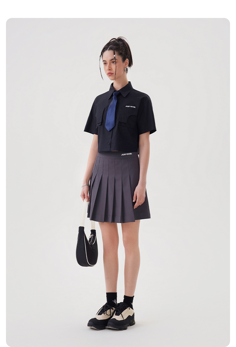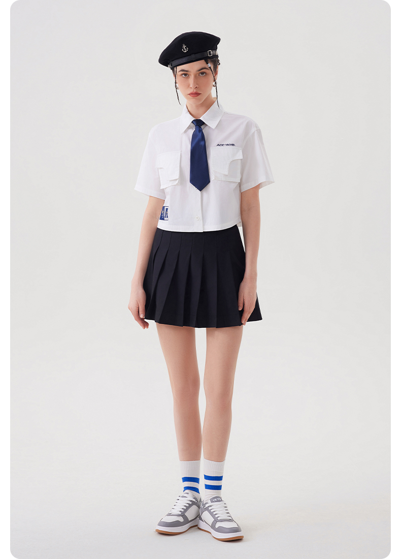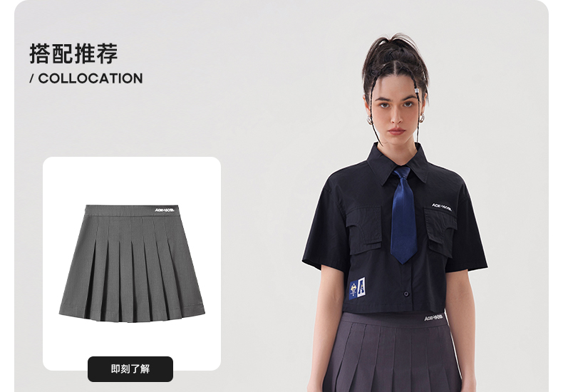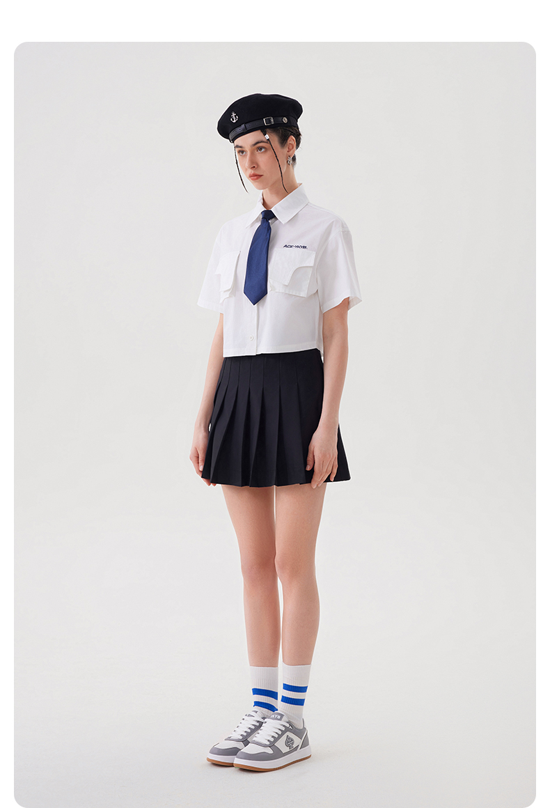 YKYB 23SS复古学院风短款衬衫女撞色领带可拆卸上衣休闲百搭潮