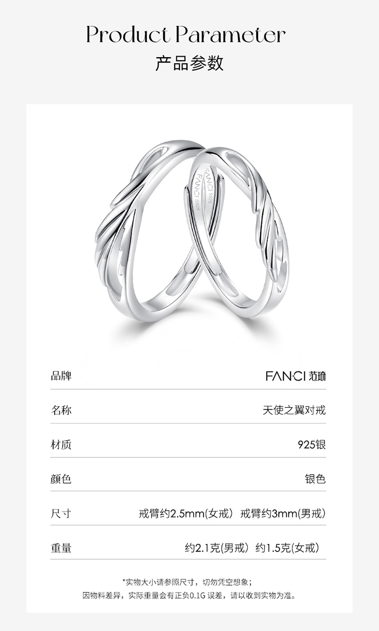 【爱你戒指】FANCI范琦 星点系列 925银情侣对戒 爱心锆石女戒