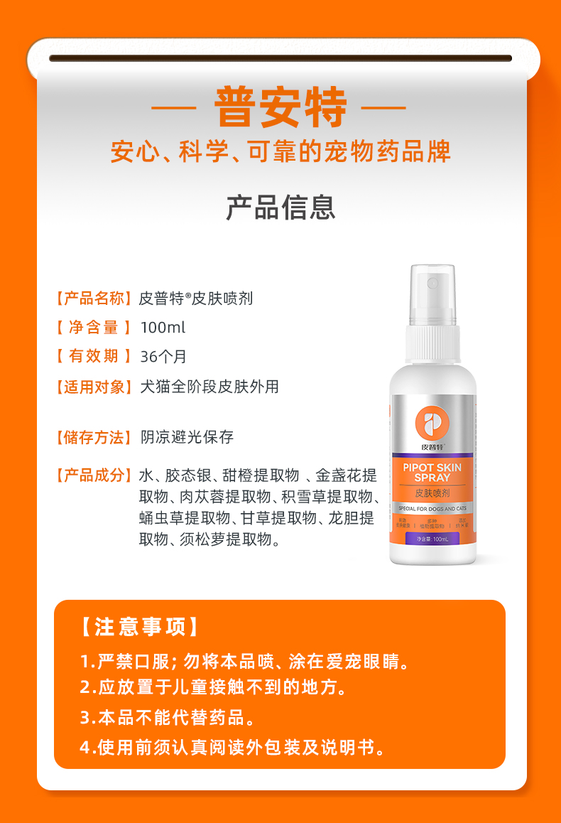 普安特喷剂狗狗皮肤真菌猫癣外用猫癣狗癣猫咪皮普特皮肤非药宠物掉毛皮普特喷雾(赠维生素1包+益生菌1条)新旧包装随机发
