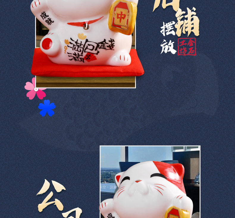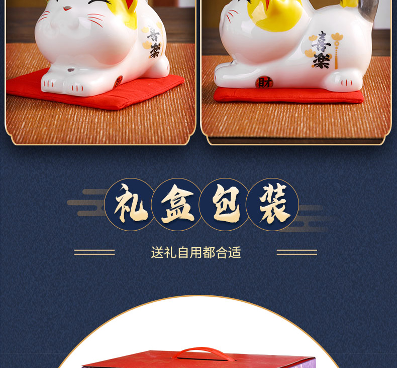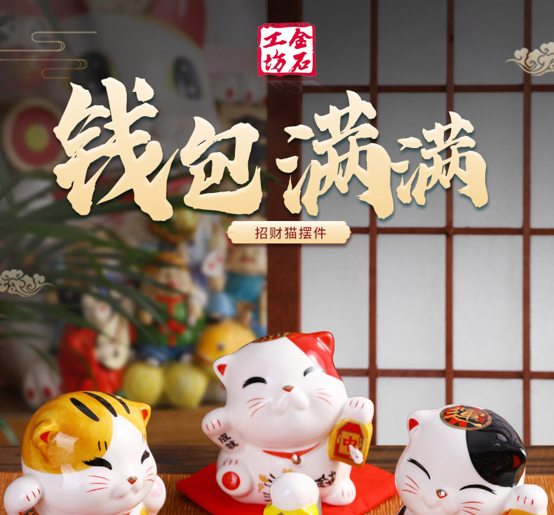 金石工坊可爱招财猫小摆件个性办公桌创意装饰陶瓷储蓄罐生日礼物