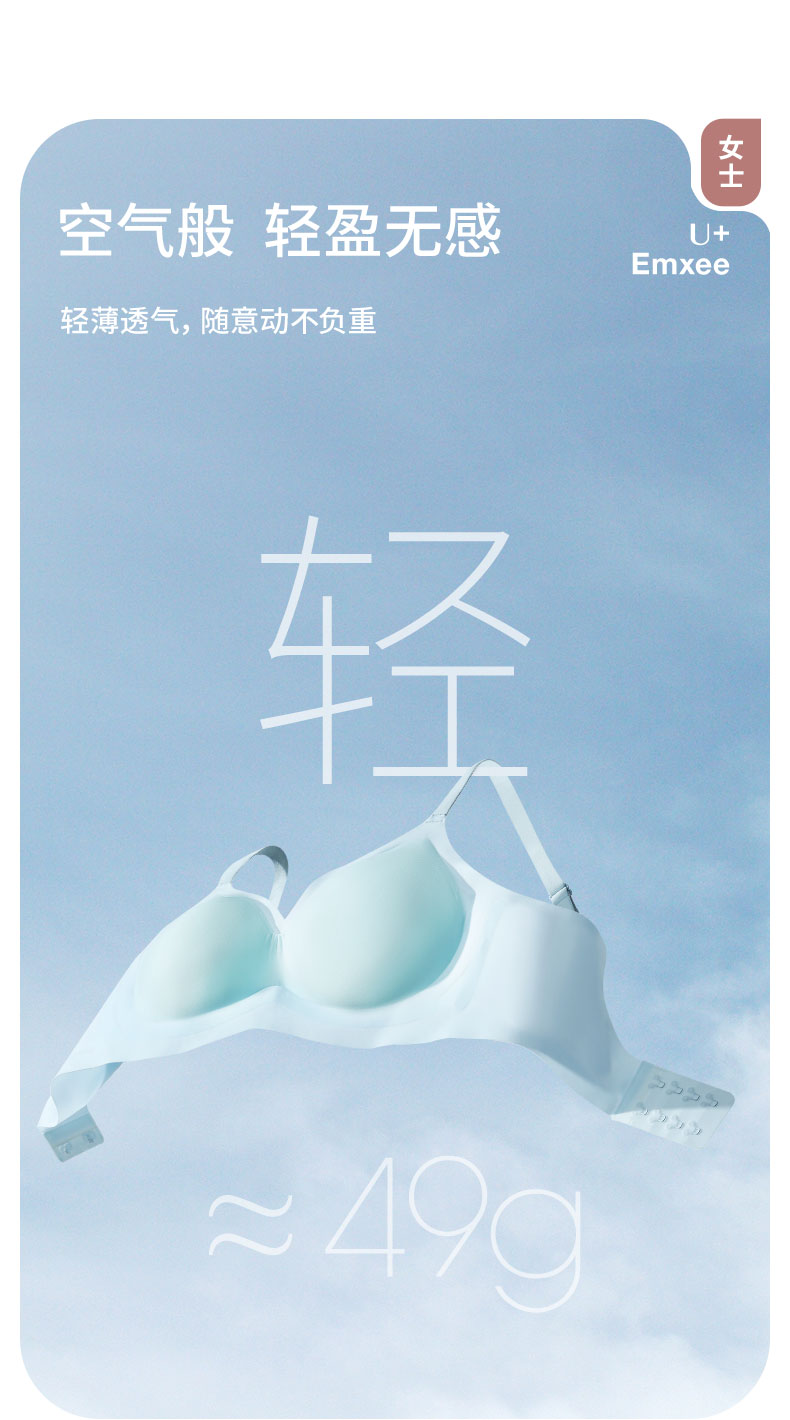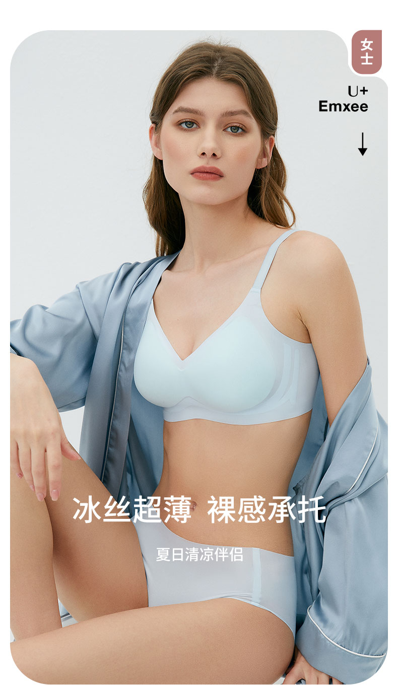 嫚熙超薄款文胸冰丝内衣女夏无痕文胸无钢圈美背