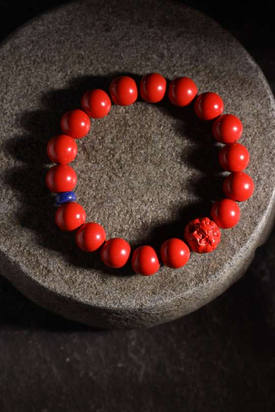青金隔片,朱砂貔貅珠