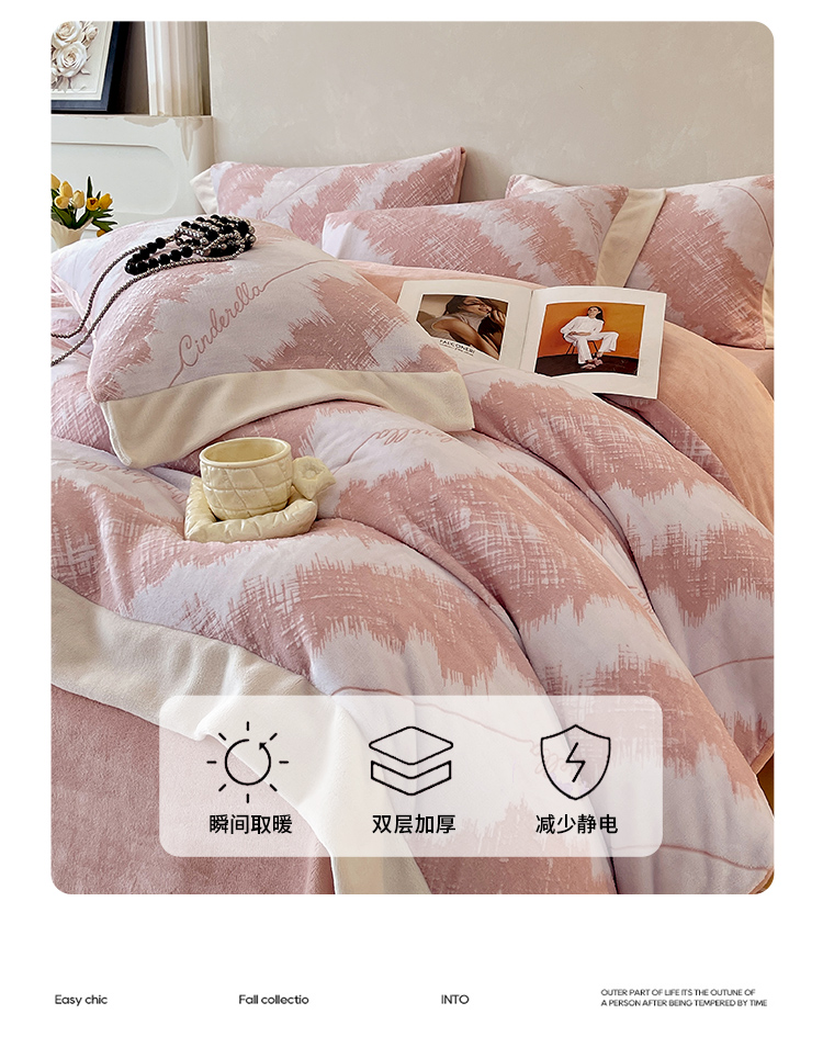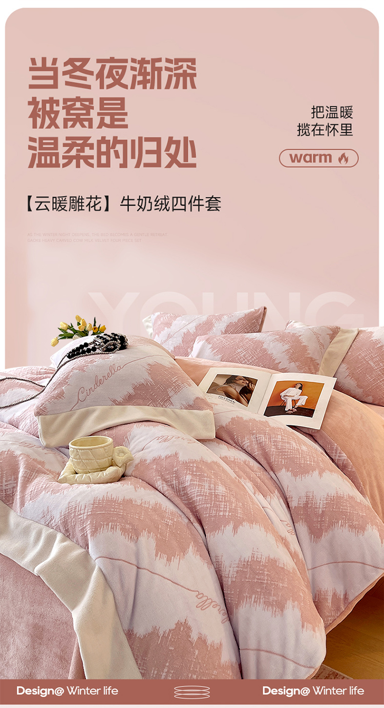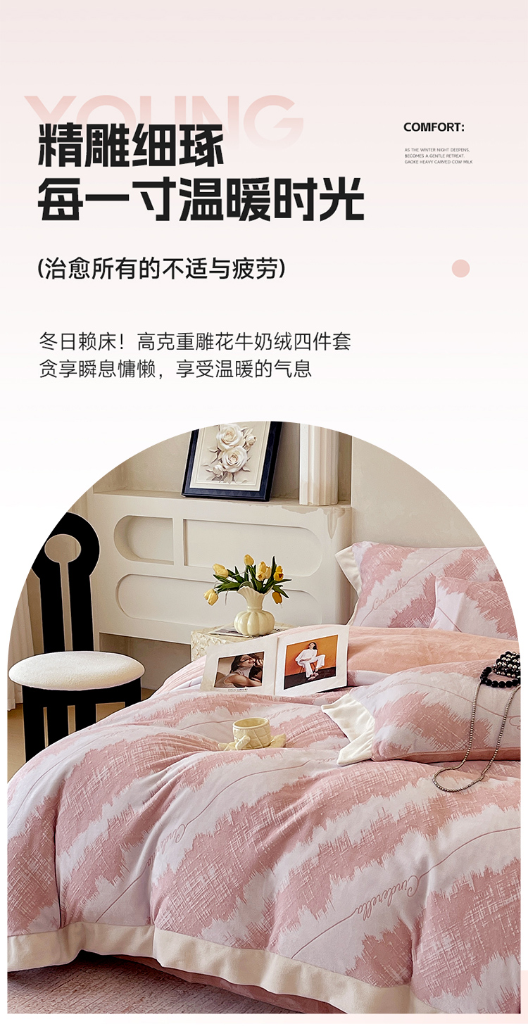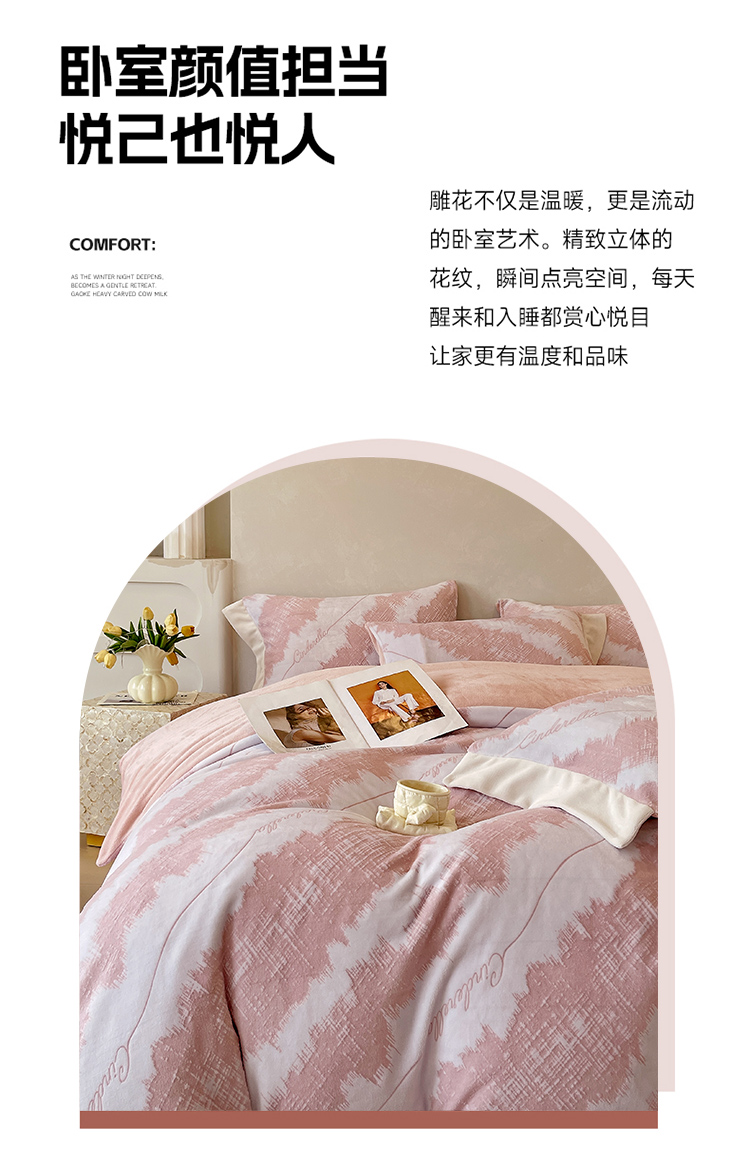 【多样屋专柜】雅鹿 雕花牛奶绒时尚格韵粉四件套200*230cm