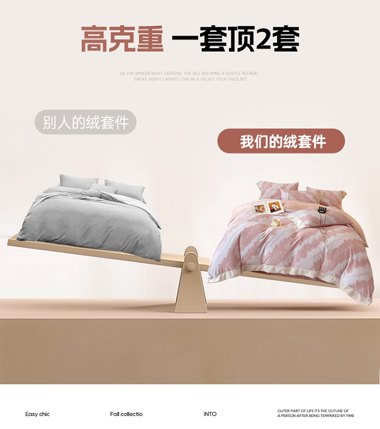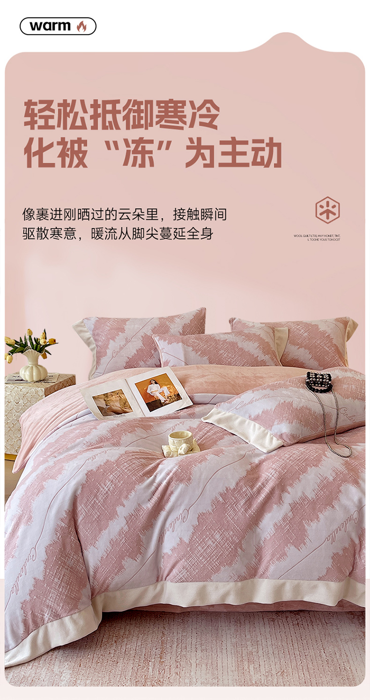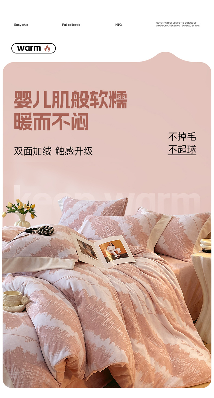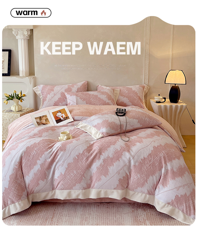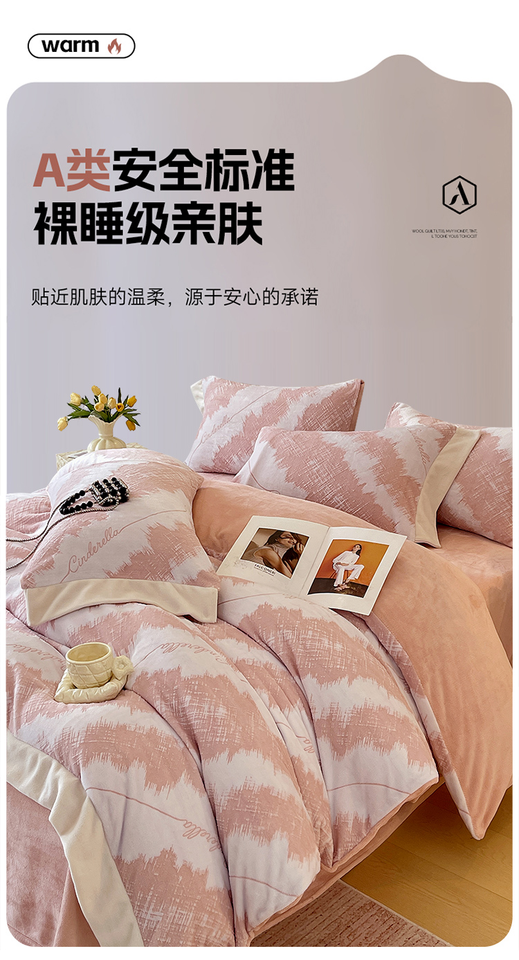 【多样屋专柜】雅鹿 雕花牛奶绒时尚格韵粉四件套200*230cm