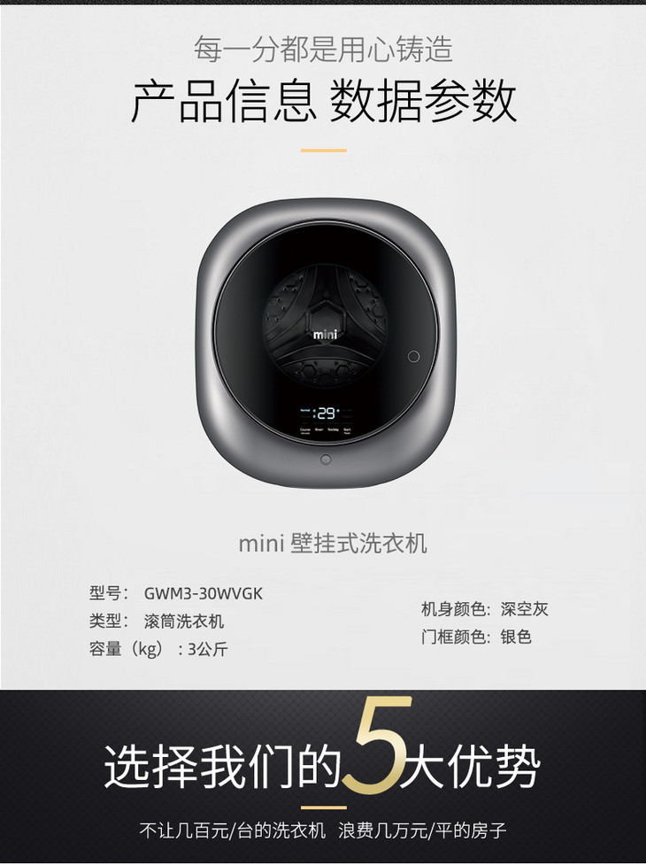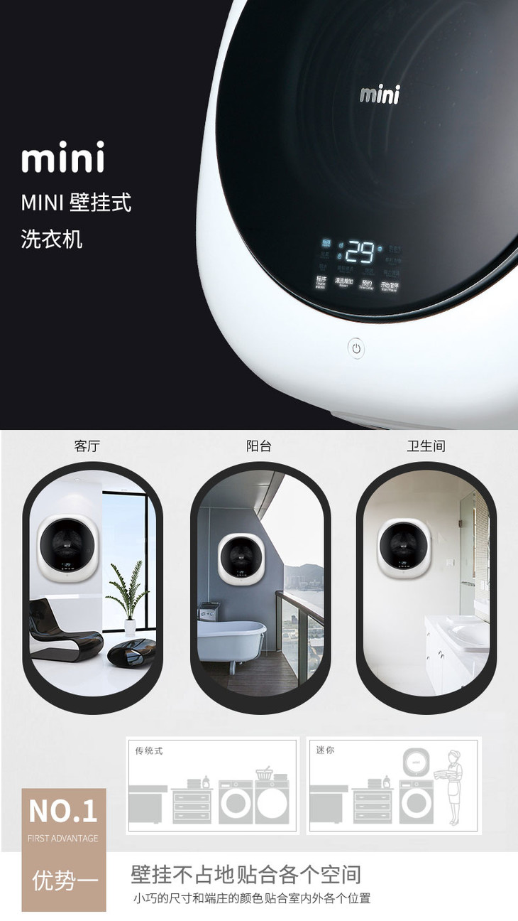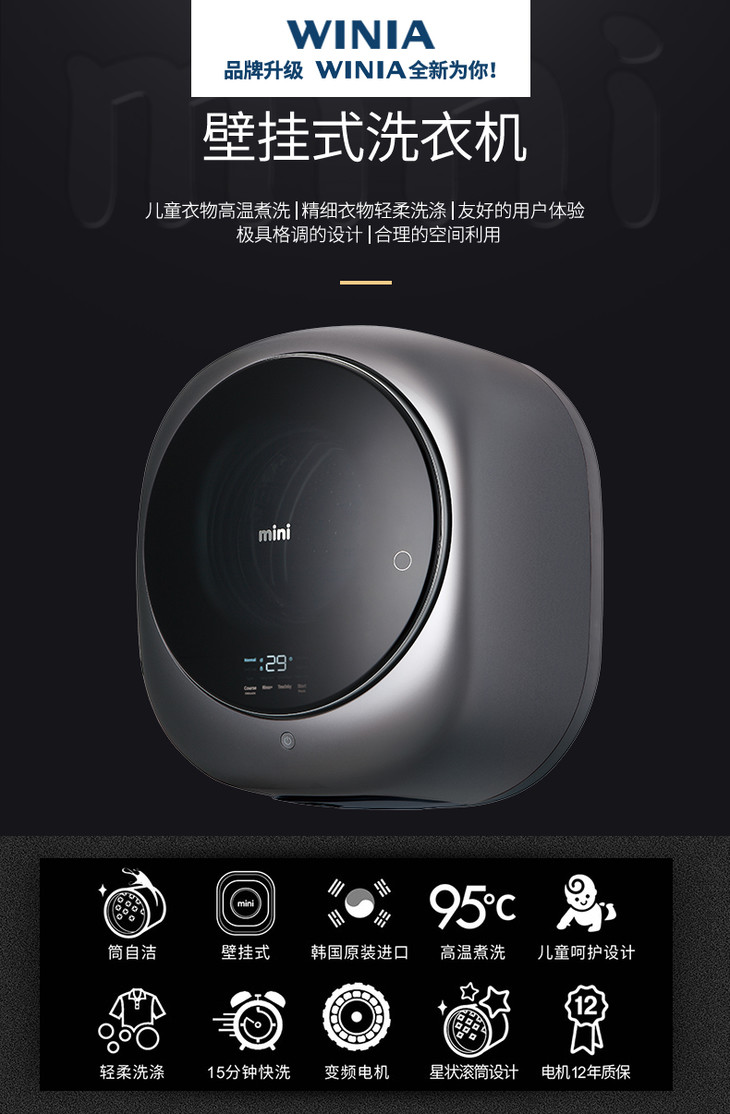 【WINIA炜妮雅】全自动滚筒壁挂式洗衣机 有机洗挂墙壁WVGK