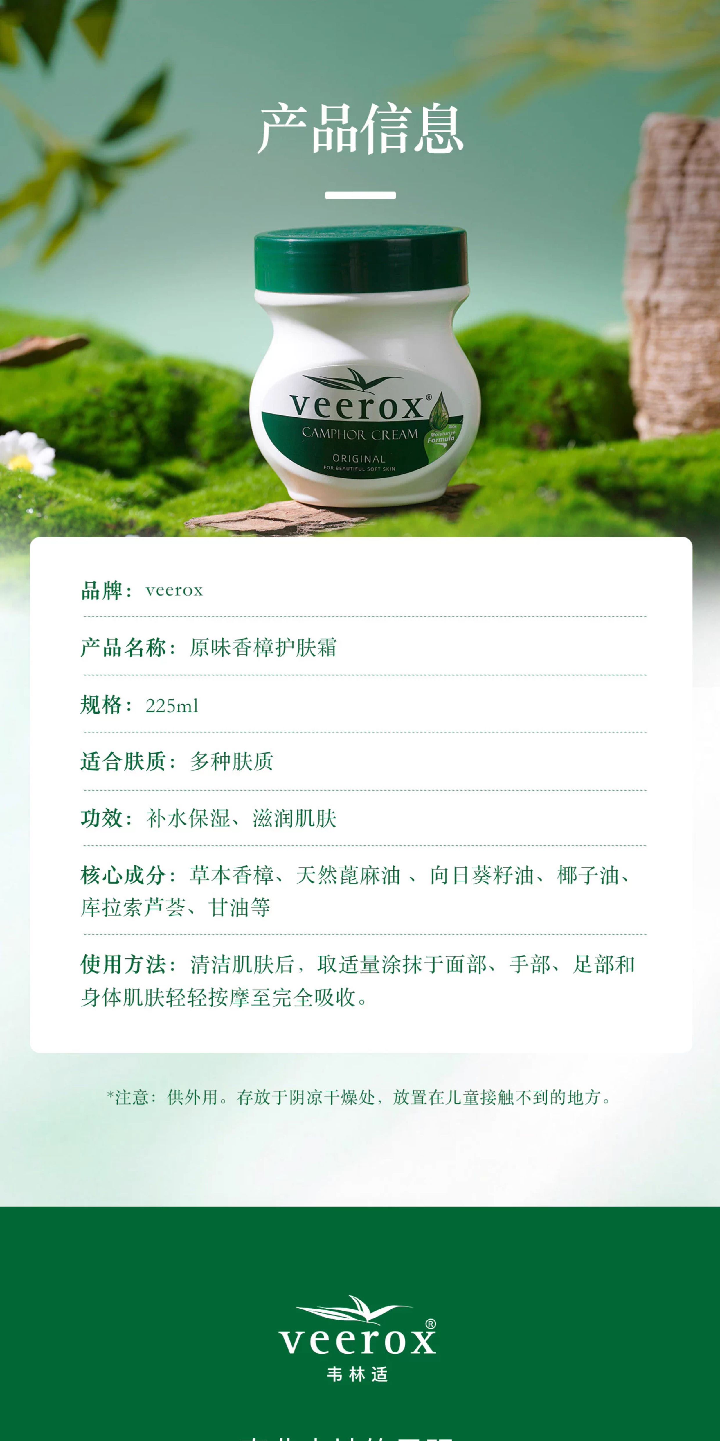【VEEROX南非大绿瓶原装进口 】香樟护肤霜 滋润保湿/抗击干裂/嫩滑肌肤 脚后跟防干裂 一瓶多效 全家可用 225ml/瓶