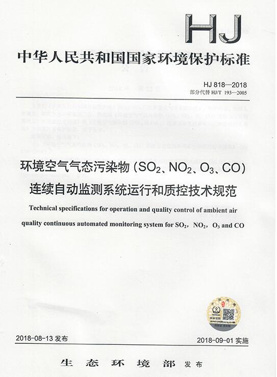 HJ 818-2018环境空气气态污染物(SO2、NO2、O3、CO)连续自动监测系统运行和质控技术规范 中国环境出版 135111699