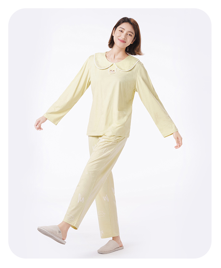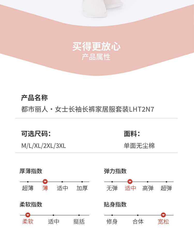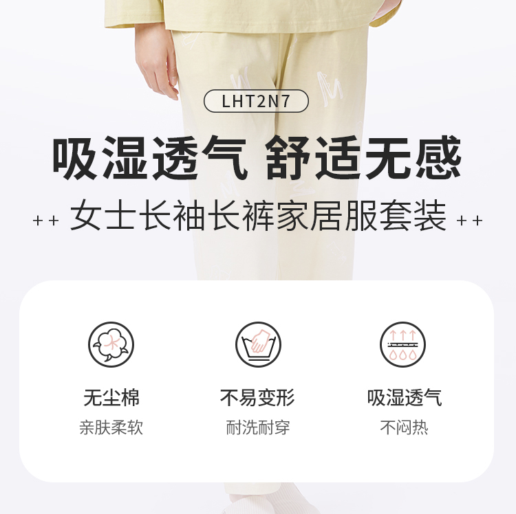 都市丽人睡衣生活家居长袖家居服单面无尘棉薄女士棉质套装LHT2N7