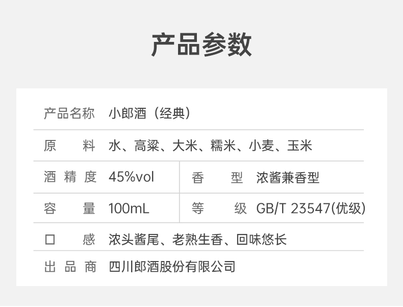 郎酒 小郎酒 经典 兼香型 小瓶白酒 45度100ml*6瓶