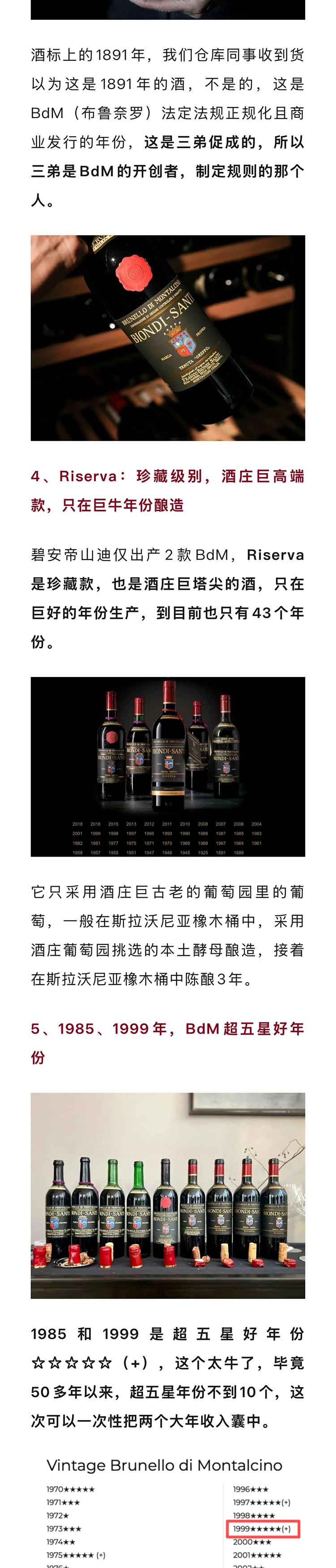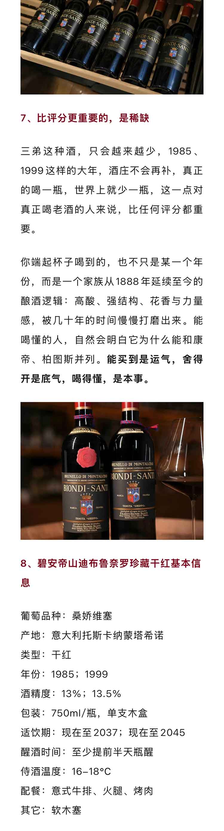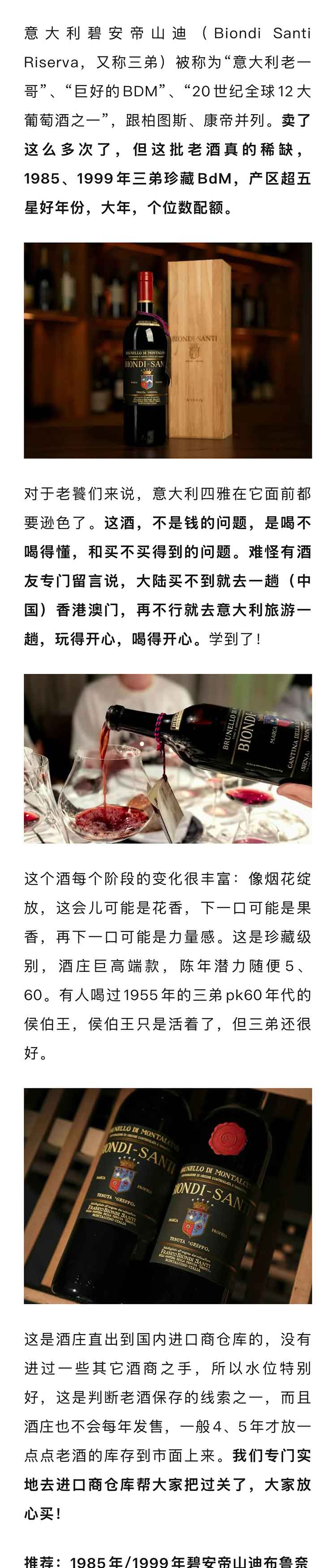 【超五星好年份老酒】意大利托斯卡纳1985年/1999年碧安帝山迪布鲁奈罗BdM珍藏桑娇维塞干红