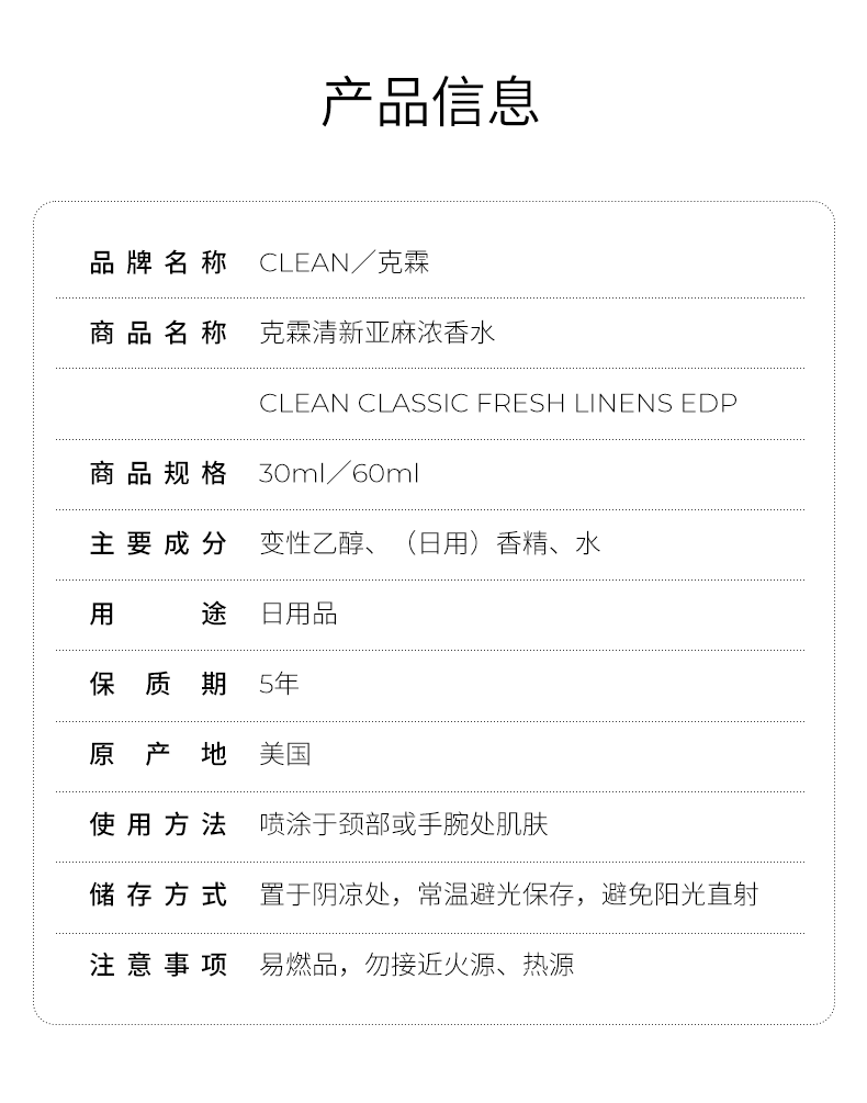 Clean 克霖 清新亚麻浓香水 60ml【保质期:2027年1月1日】