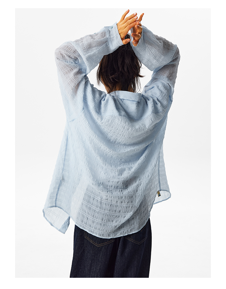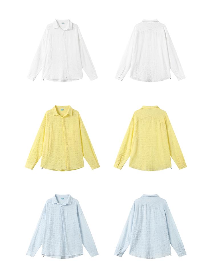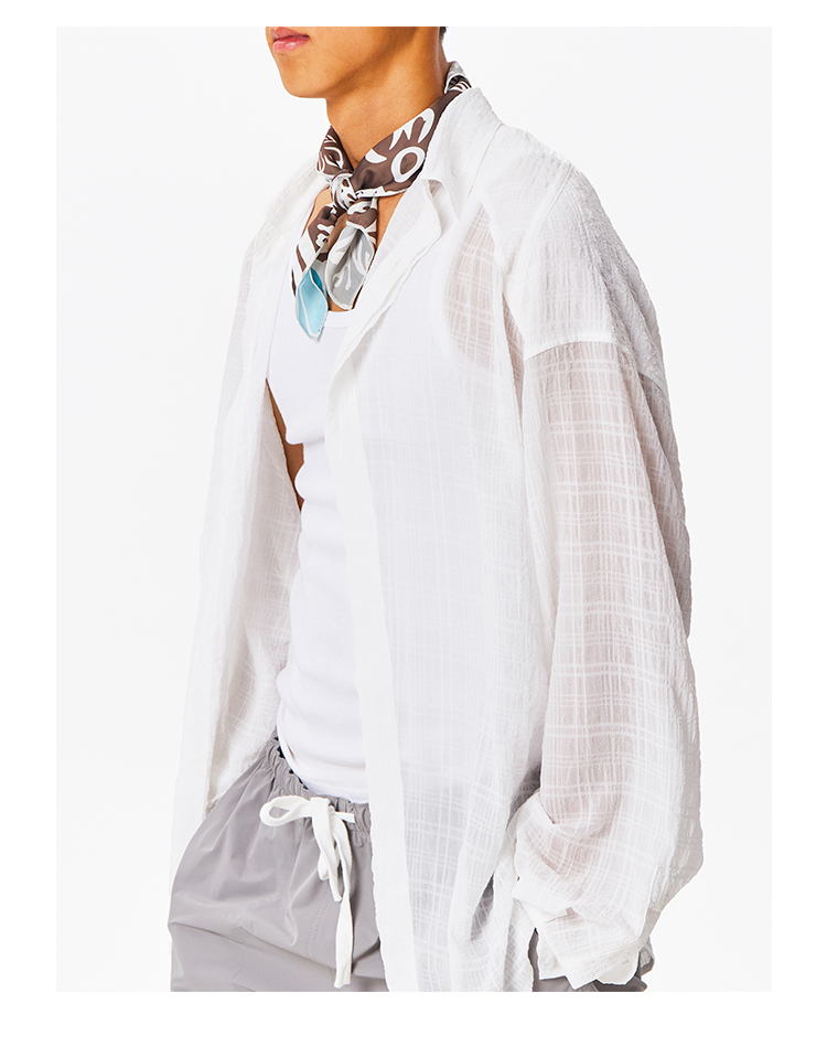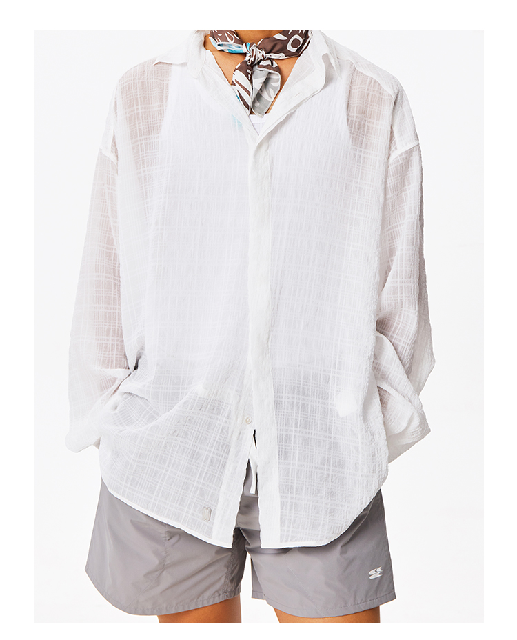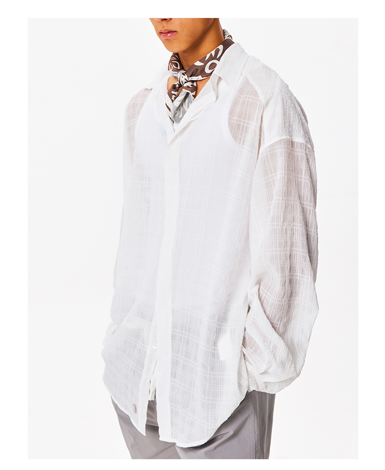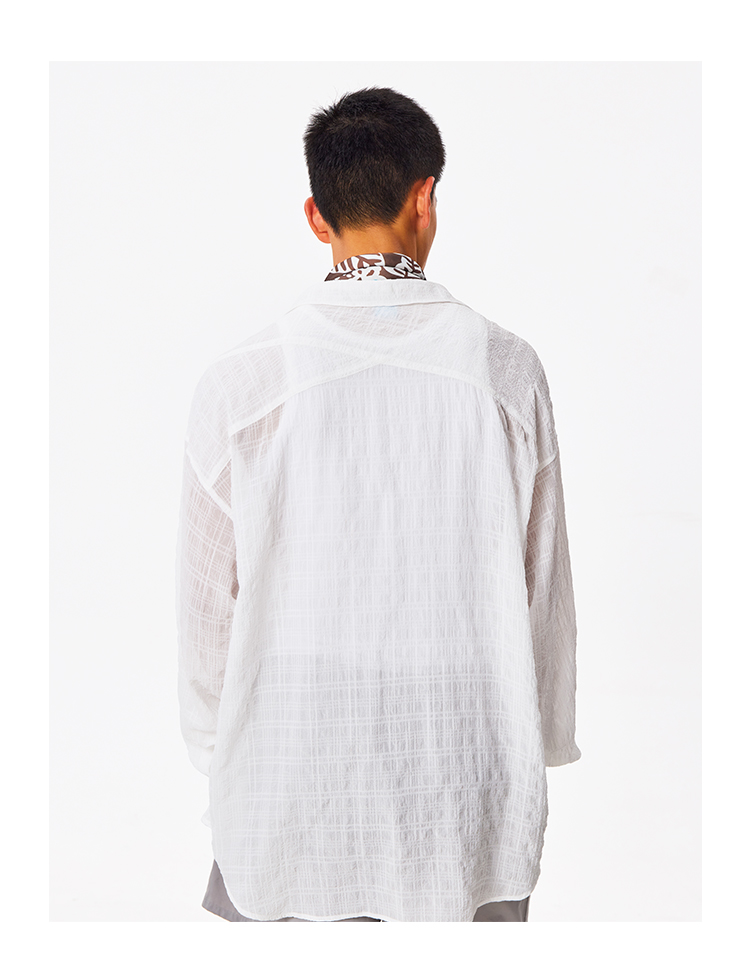 CryingCenter 中性 三色方格泡泡纱海草长袖衬衫 哭喊中心