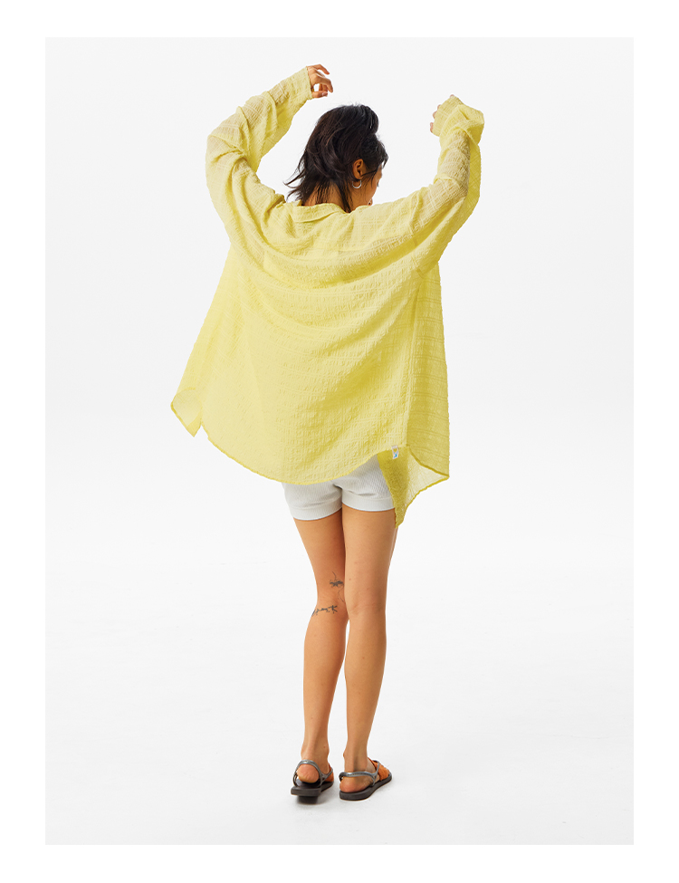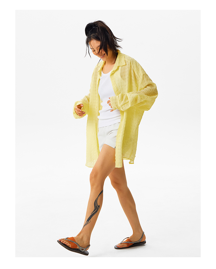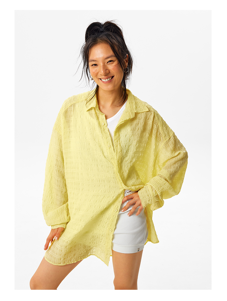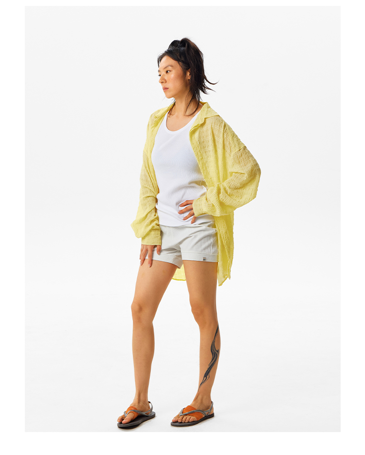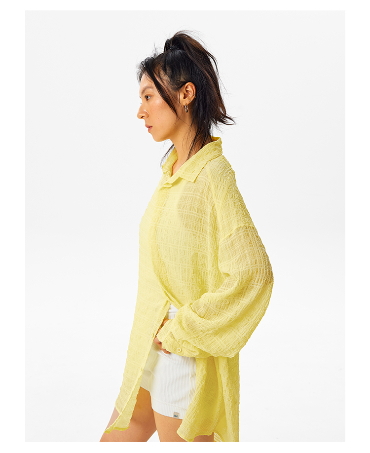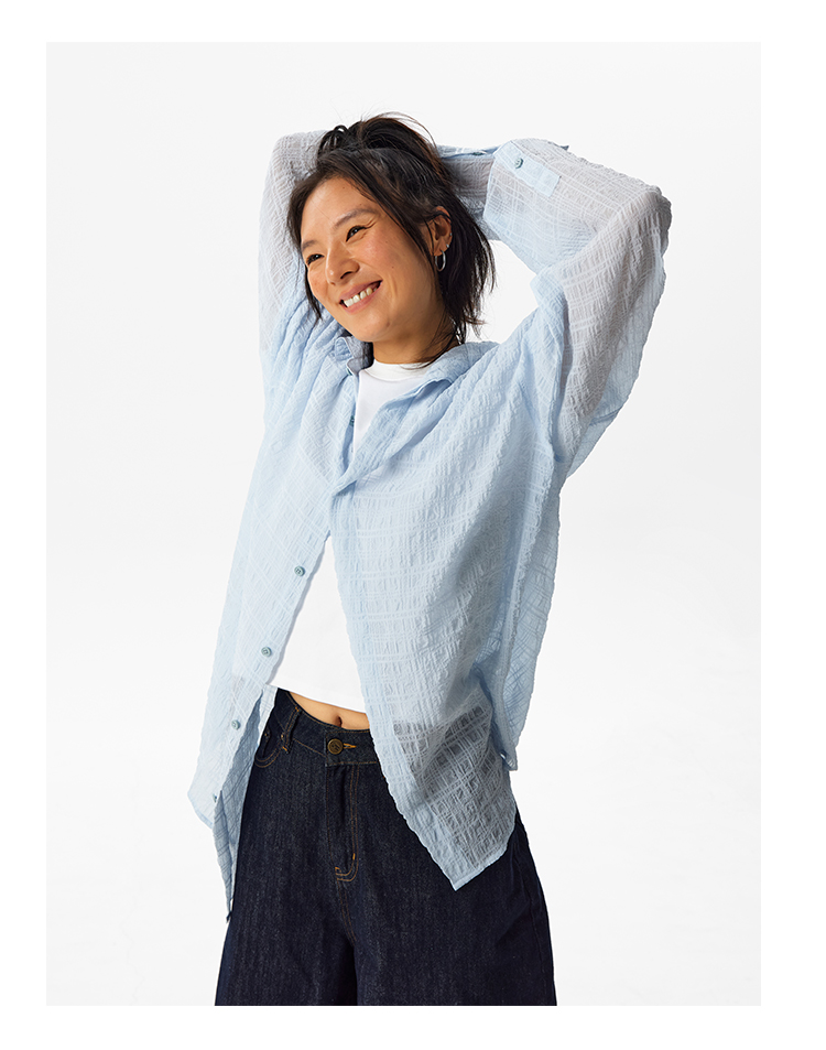 CryingCenter 中性 三色方格泡泡纱海草长袖衬衫 哭喊中心