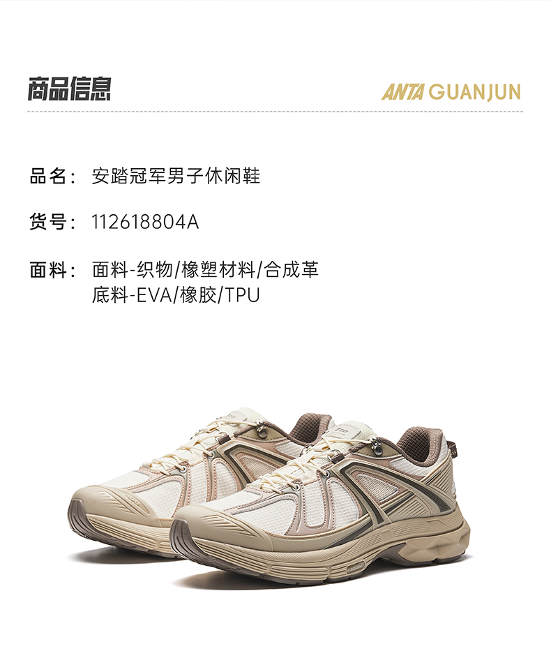 安踏冠军G02Wandering户外休闲鞋男女复古老爹运动鞋子122618804A