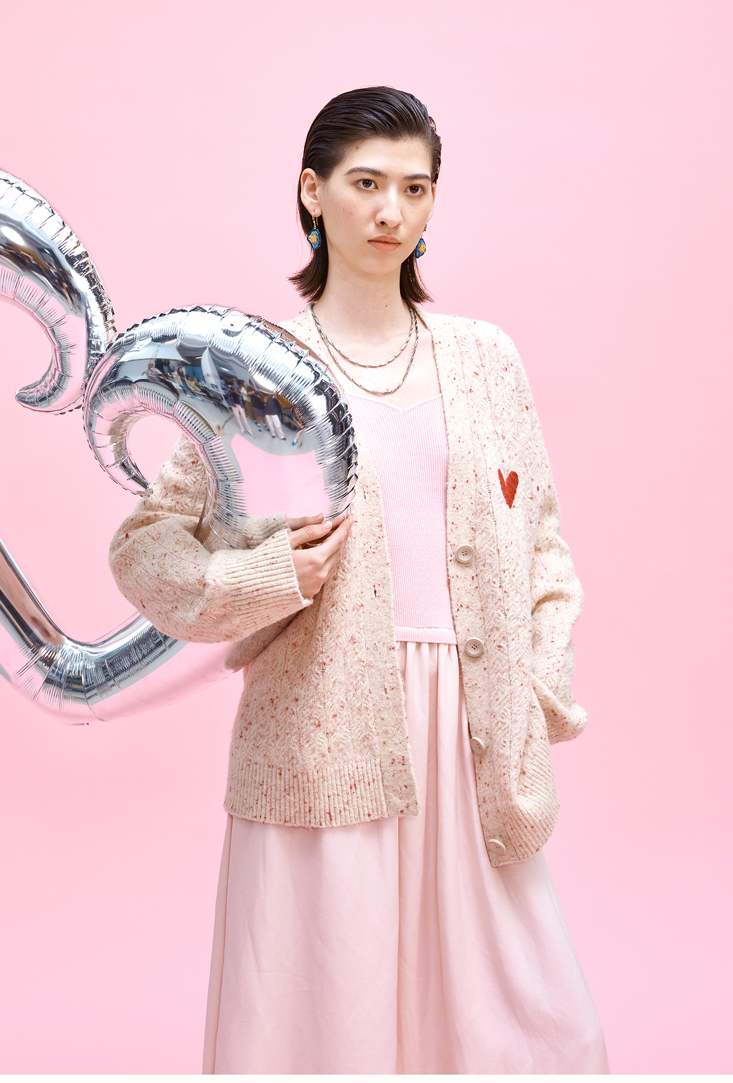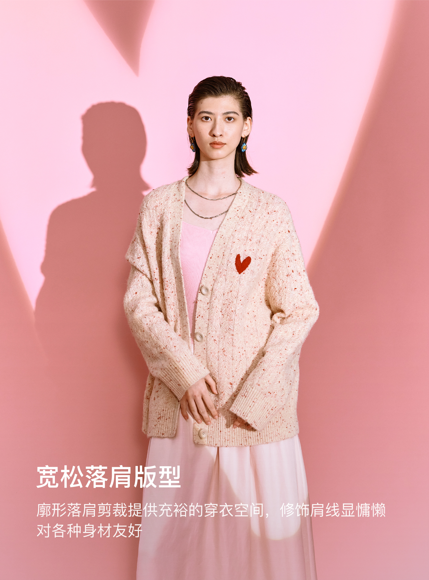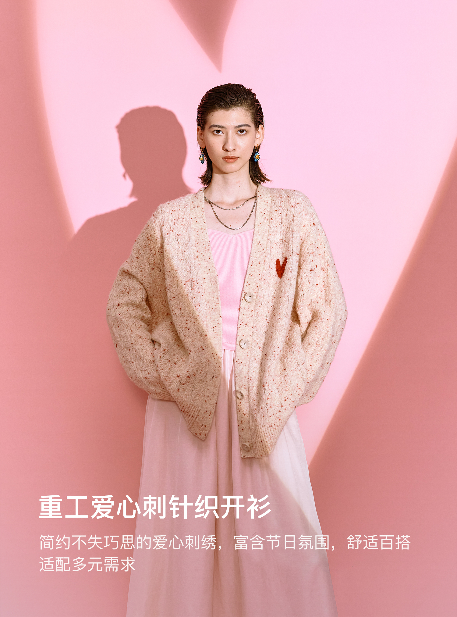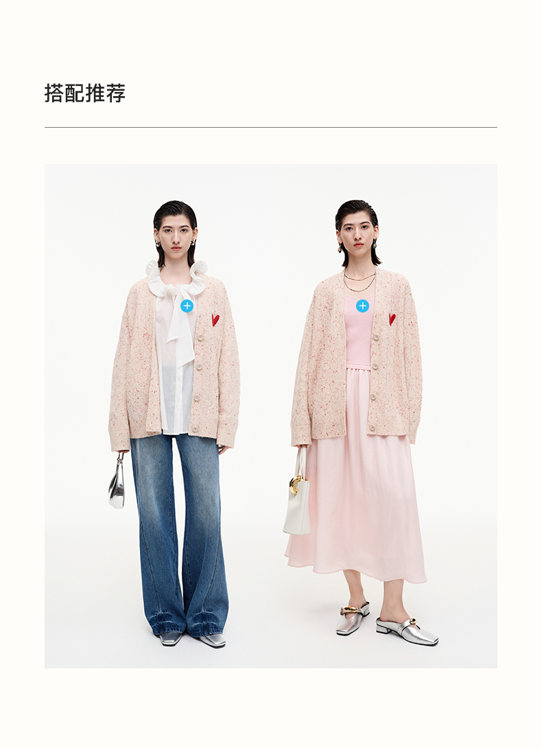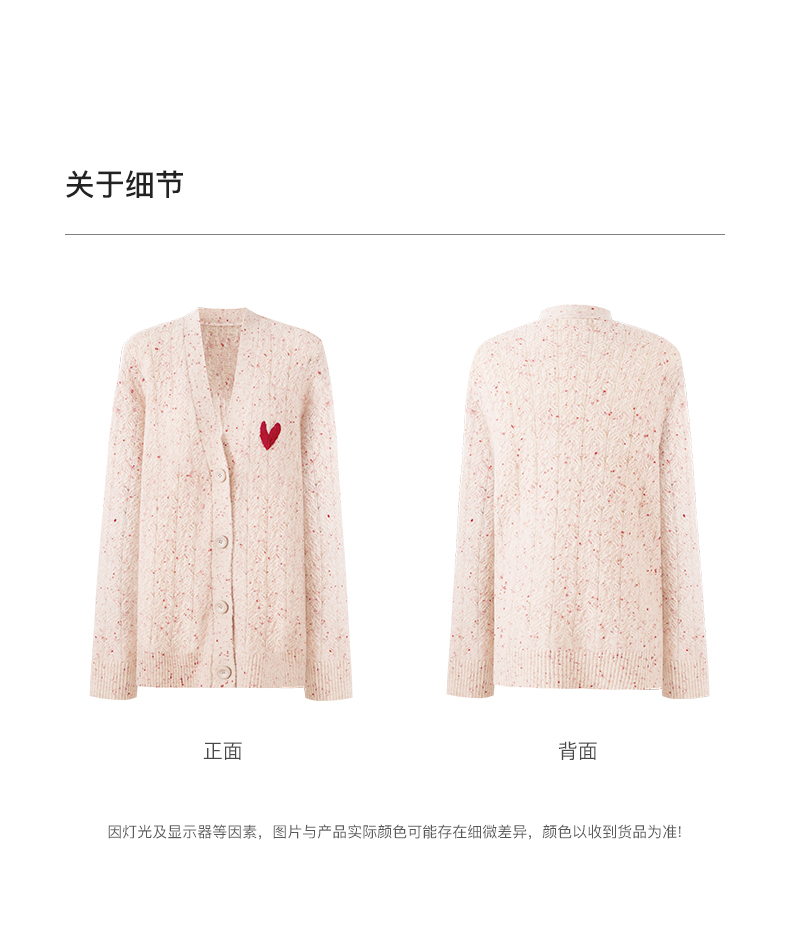 SELFWHO七夕系列羊毛混纺爱心V领针织开衫女2025秋季新款麻花外套