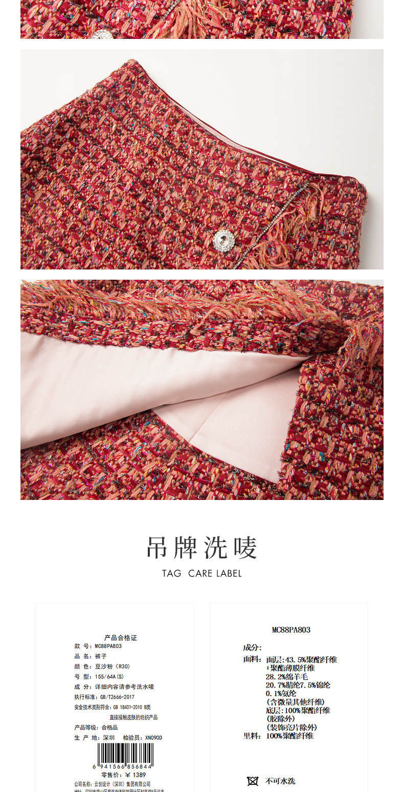 玛克门店发货:MAXRIENY新年小香风半裙(货号:MC88PA803)