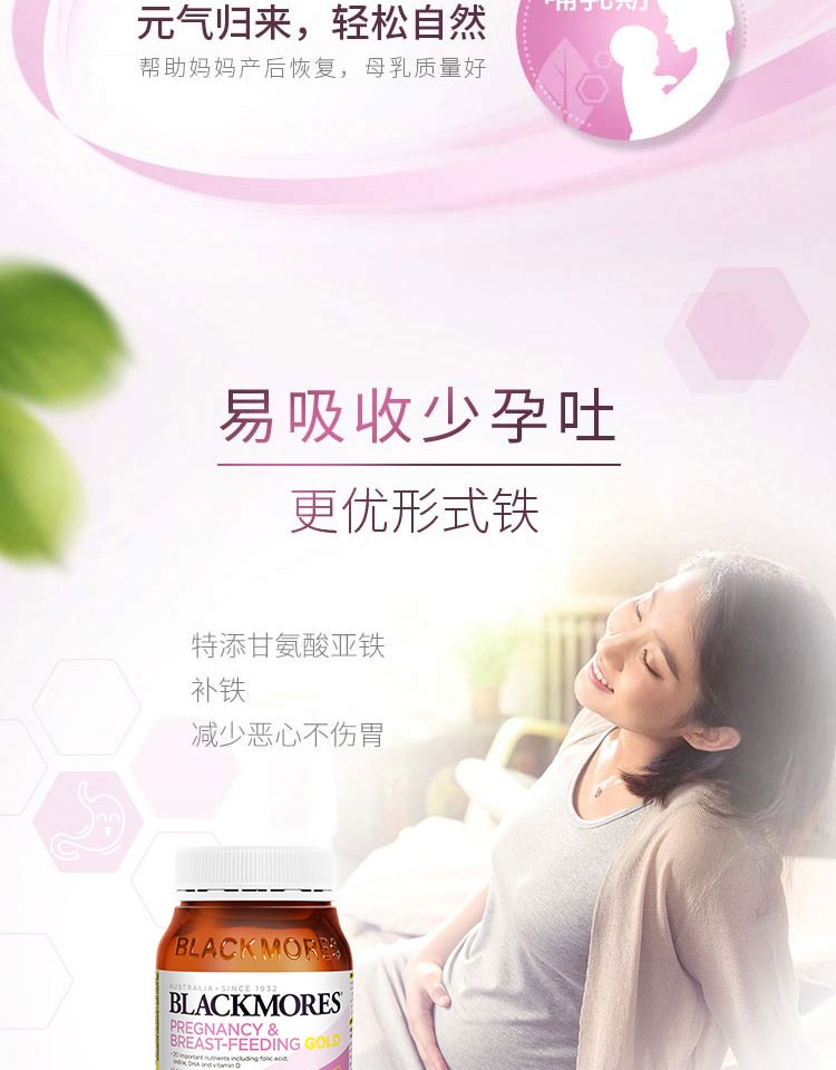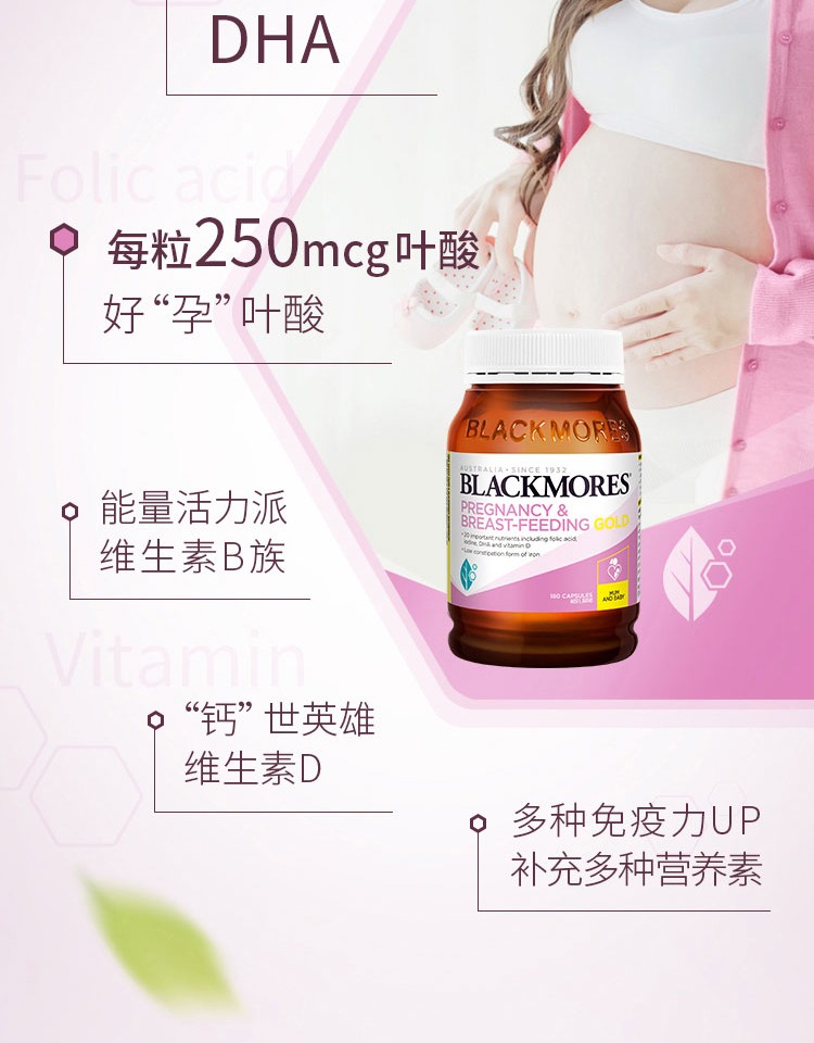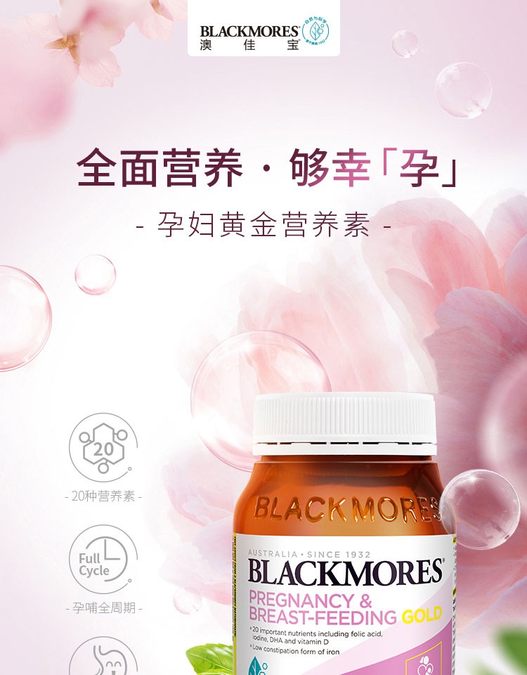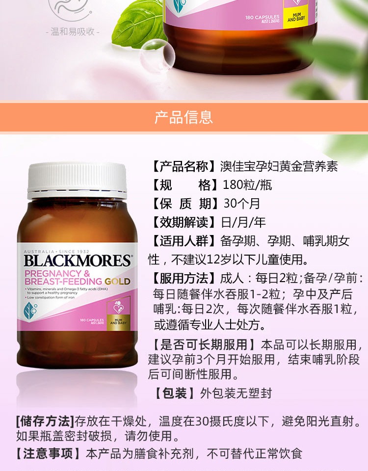 【保税仓】澳佳宝Blackmores孕妇多维黄金素叶酸胶囊180粒