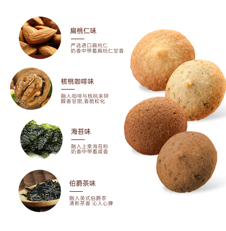 【趣宝多口味曲奇饼干】扁桃仁/海苔/伯爵茶味饼干