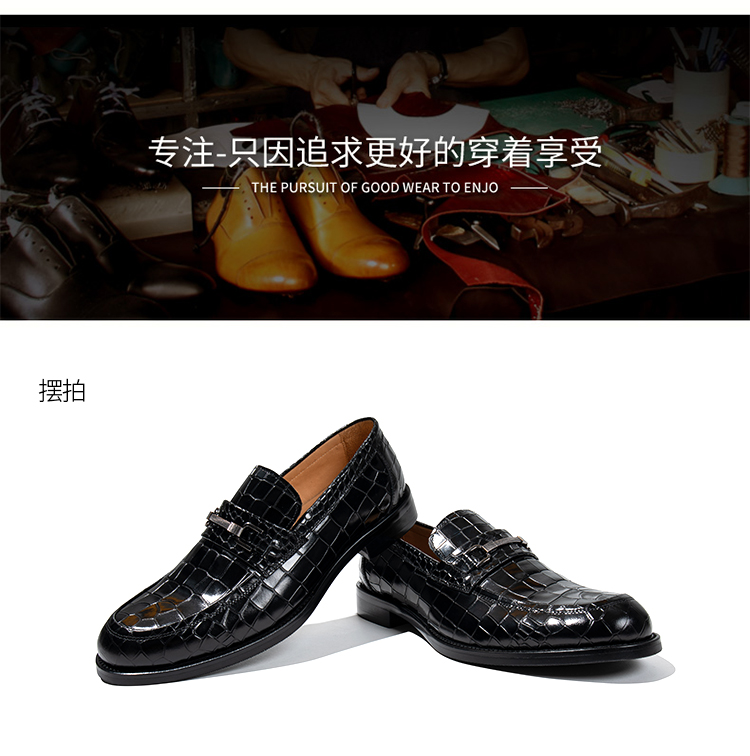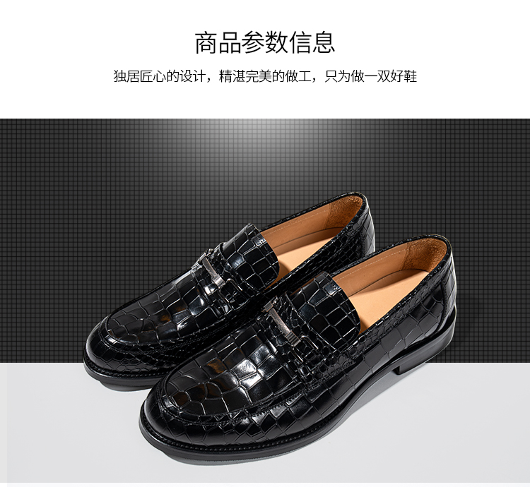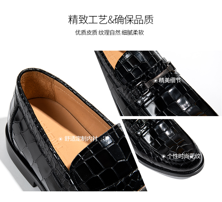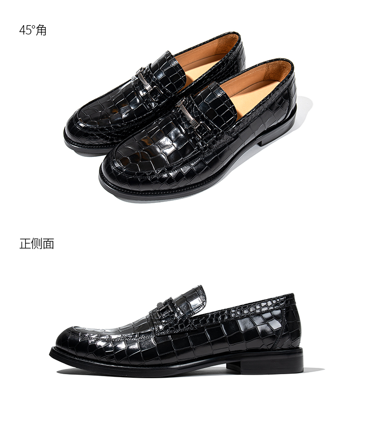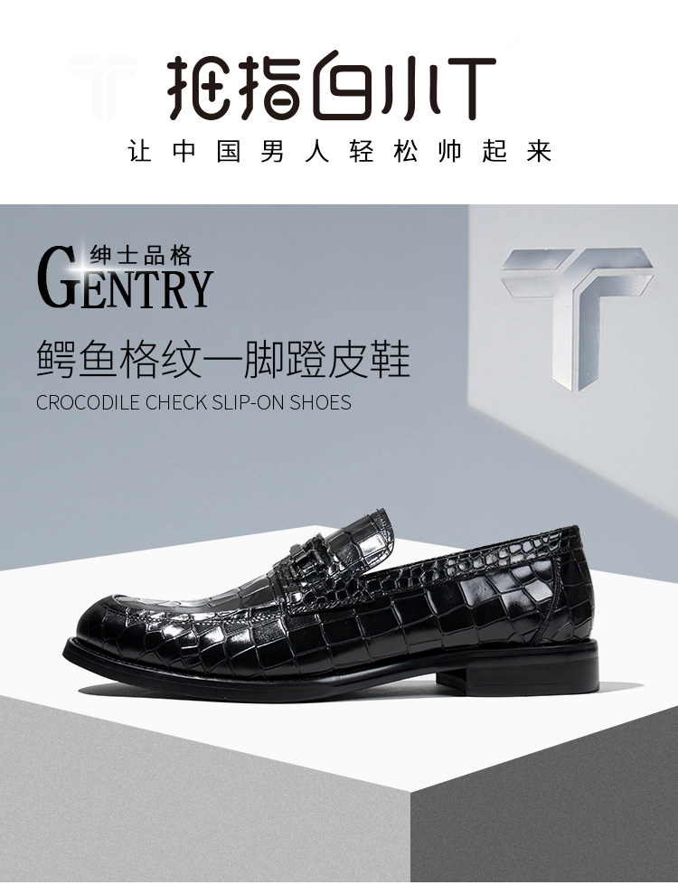 拇指白小T鳄鱼格纹一脚蹬皮鞋