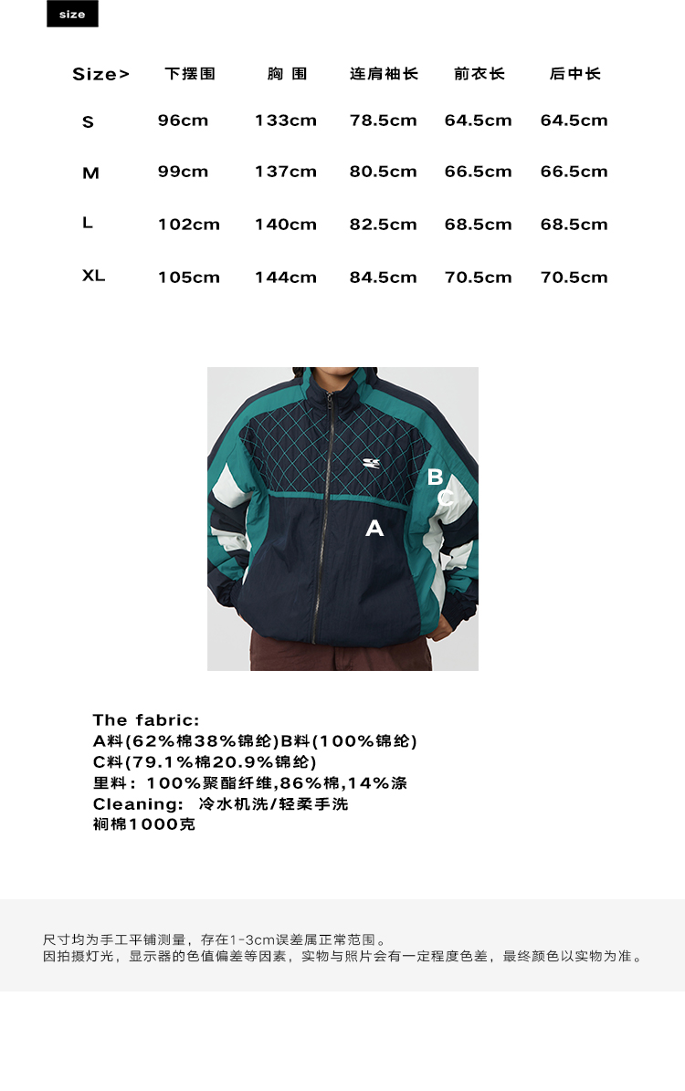 CryingCenter 复古孔雀绿运动夹克棉服秋冬男女款 哭喊中心