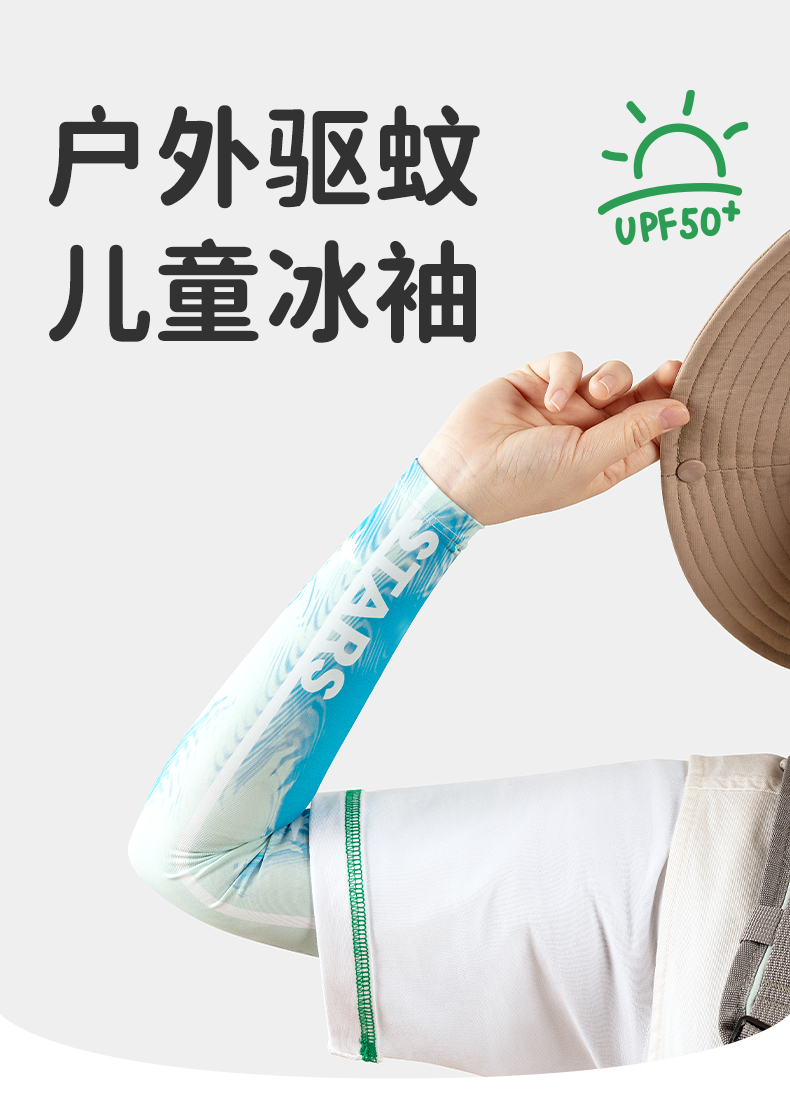 绿鼻子儿童防晒袖套凉感冰丝护臂宝宝透气防紫外线柔软户外冰套袖