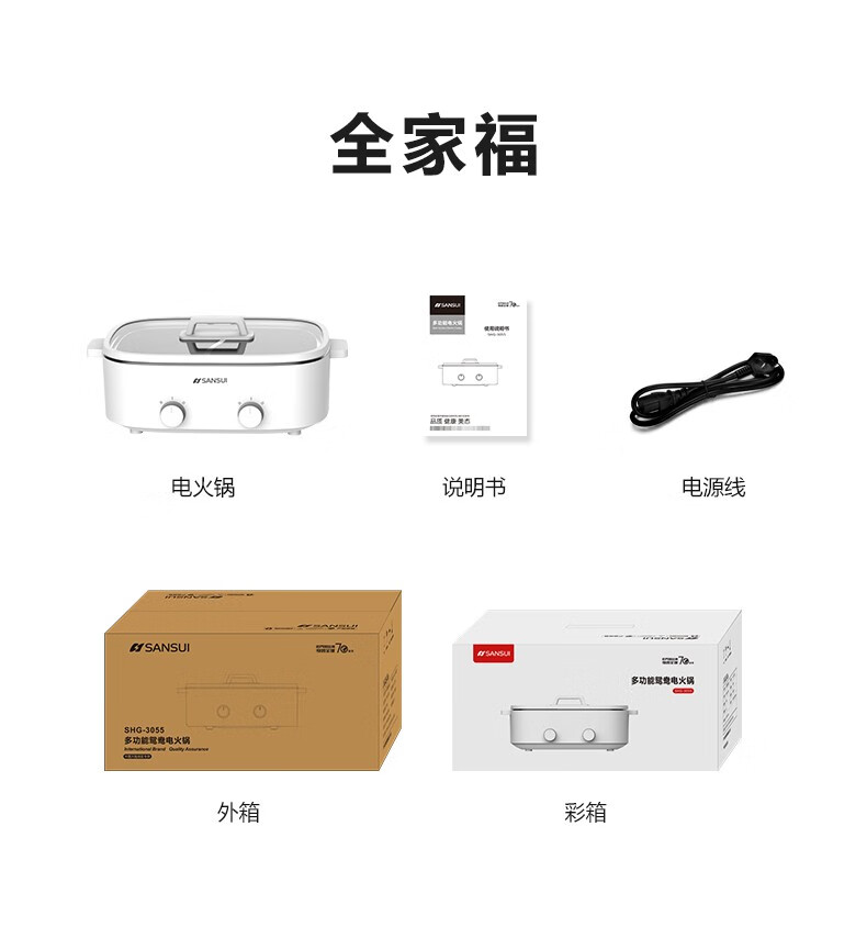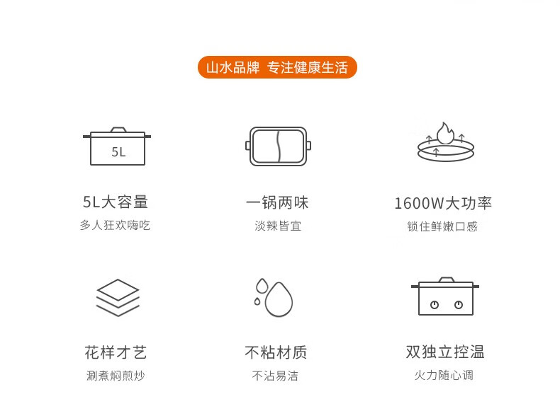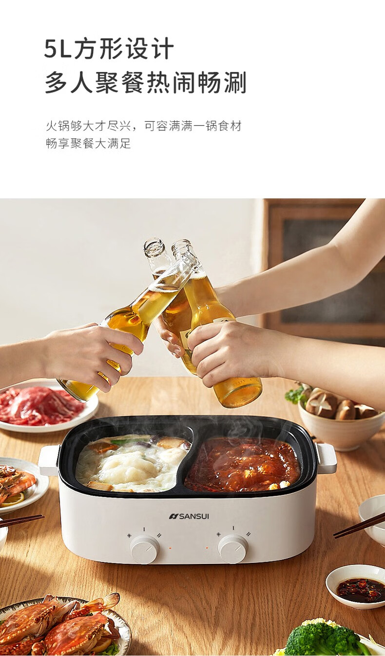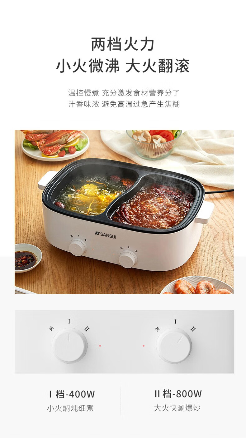 山水(SANSUI)多功能鸳鸯火锅(双旋钮控温)SHG-3055