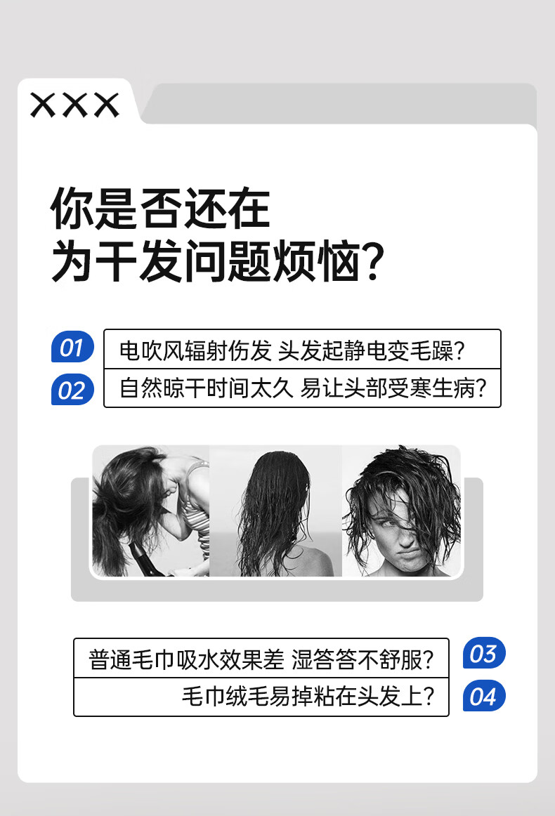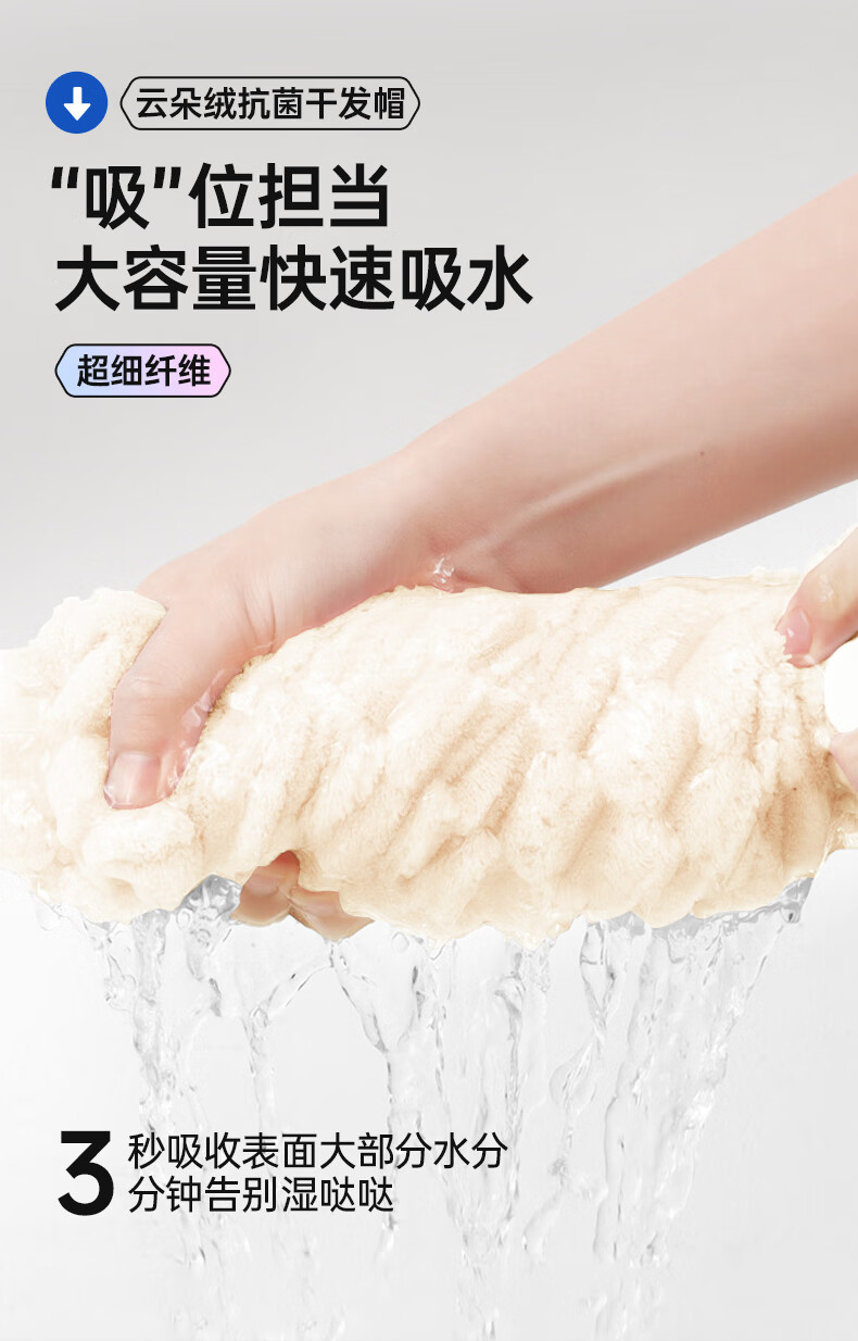 GRRAEY 云朵绒抗菌干发帽5A抗菌 3条装