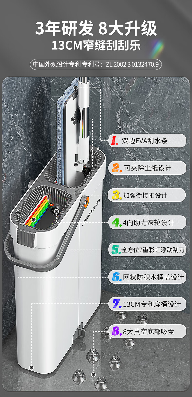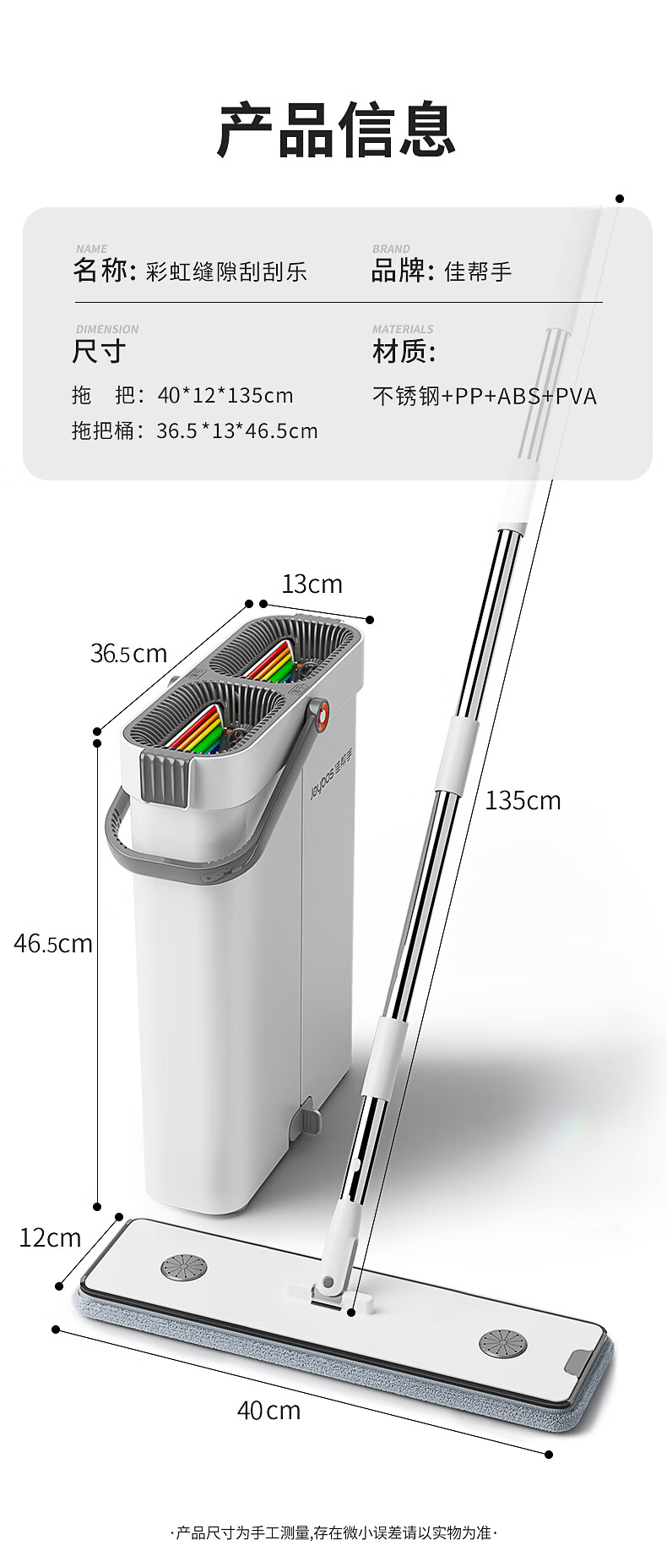 佳帮手 拖把 扫除道窄缝彩虹刮刮乐塑板标准直柄款-佳灰2布(0.4mm杆)40cm JBS-PBTB-GZ1S1-4JGY2P