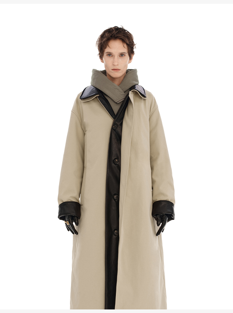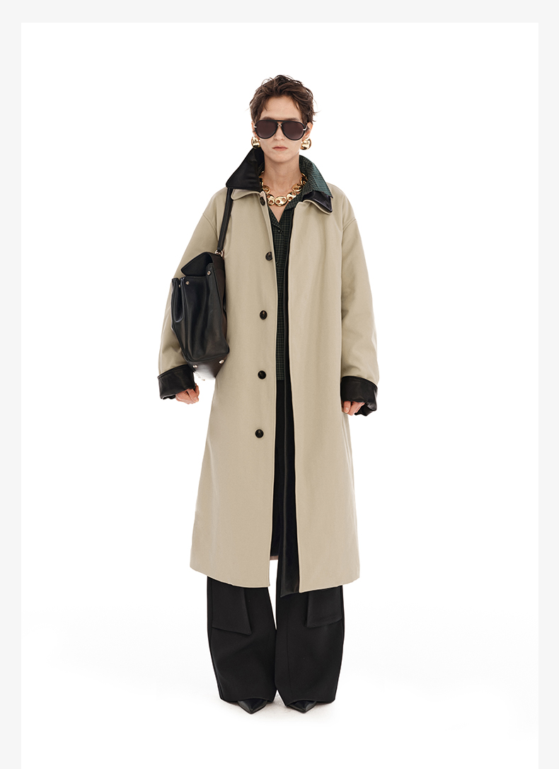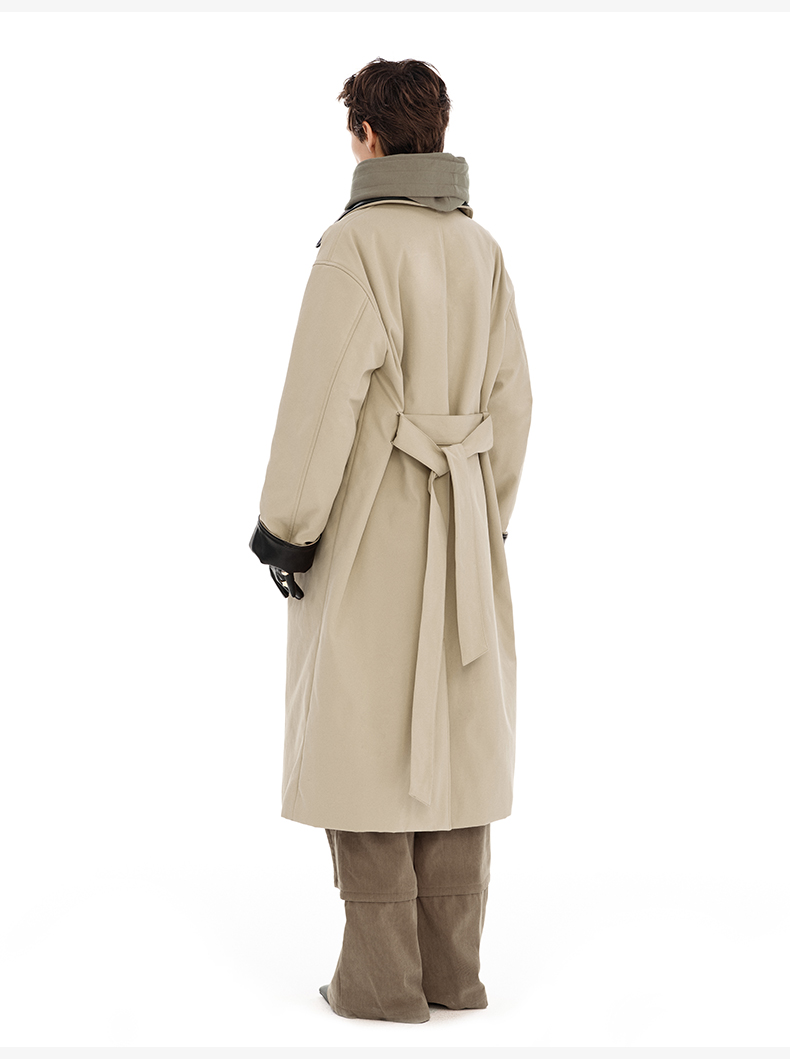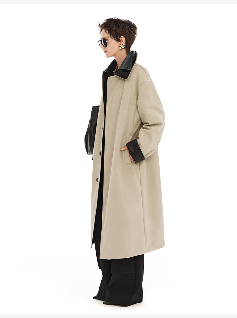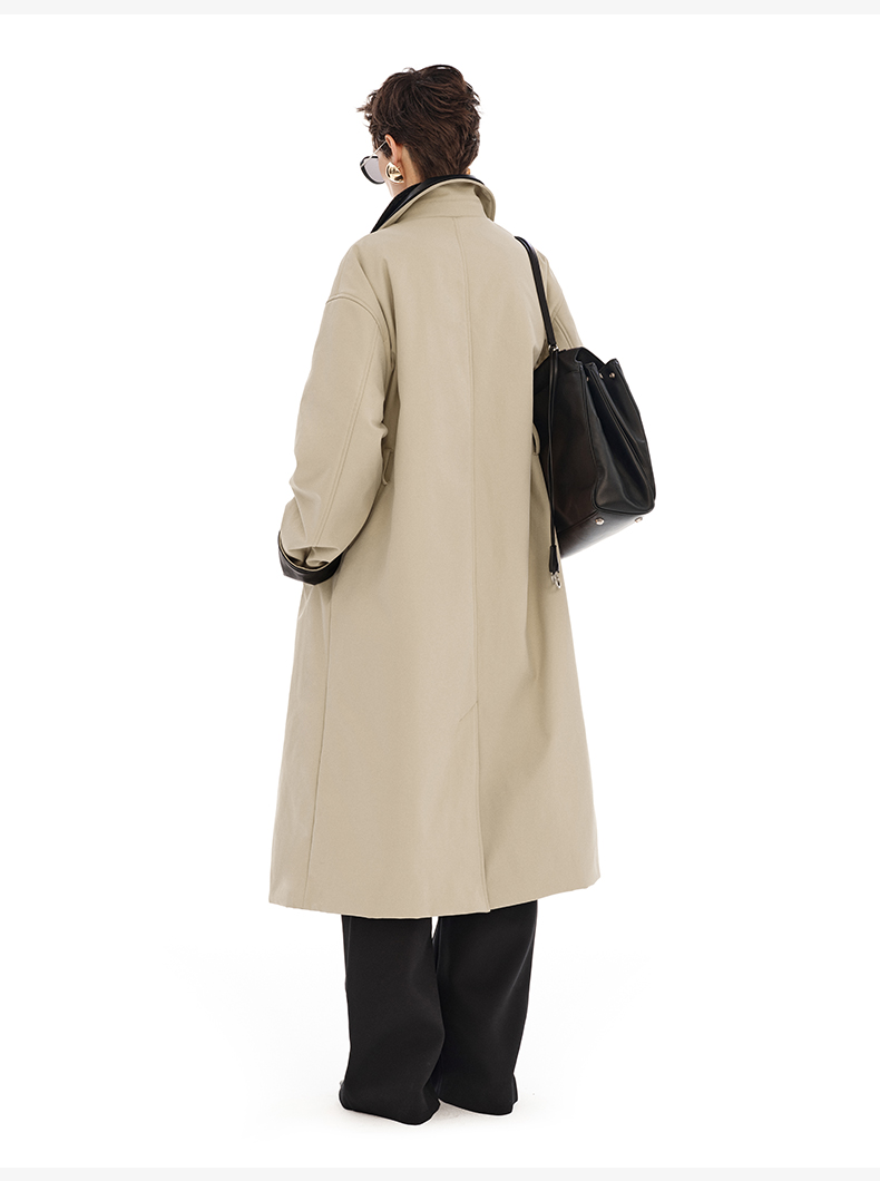 NUTH浅卡其色宽松中长款风衣皮领夹棉秋冬加厚大衣外套女