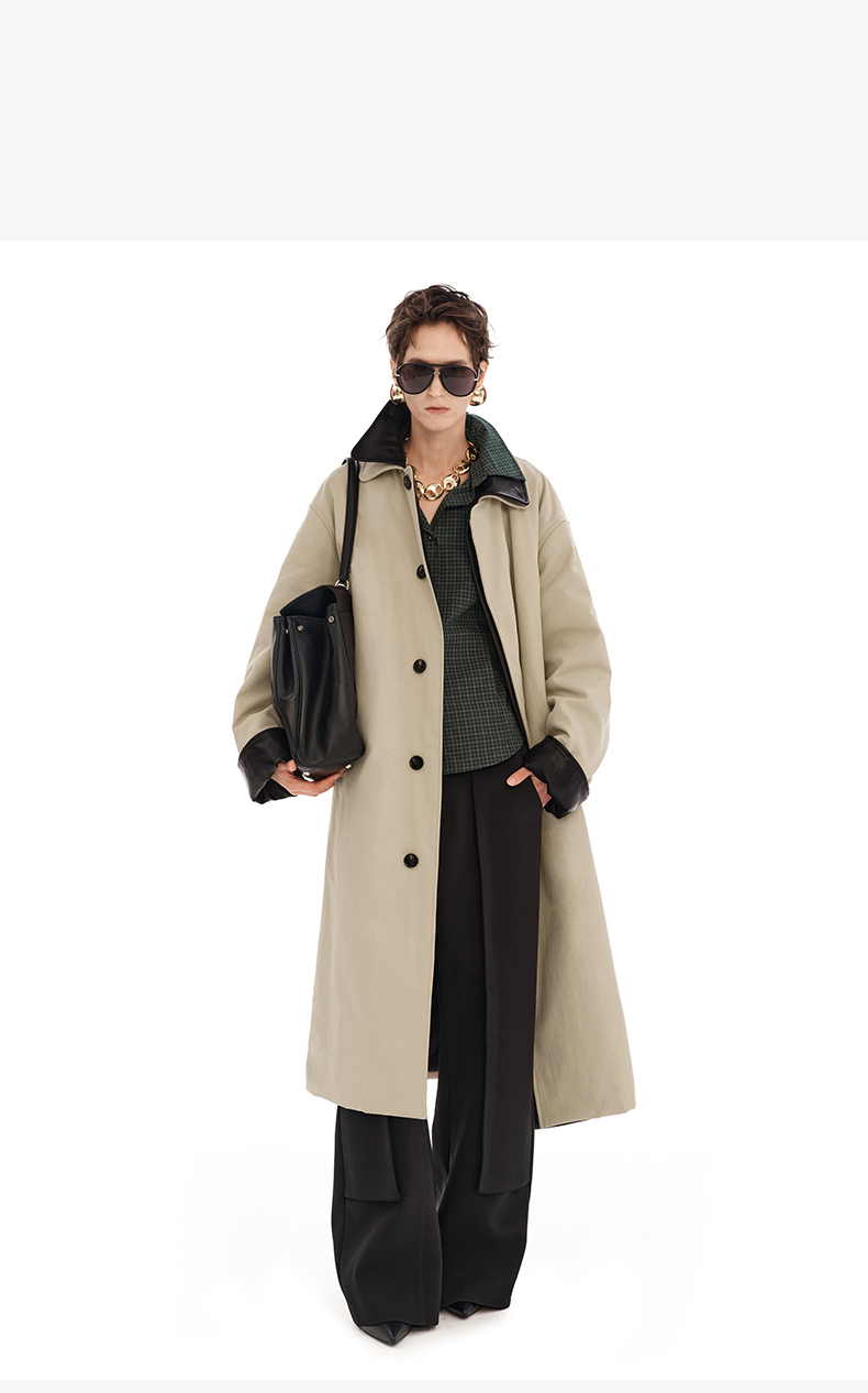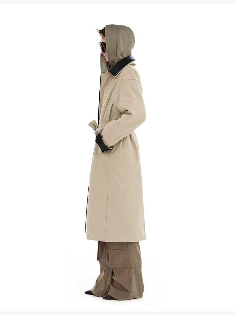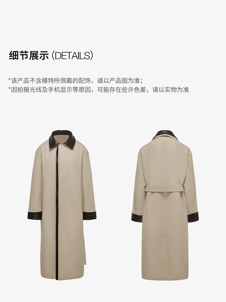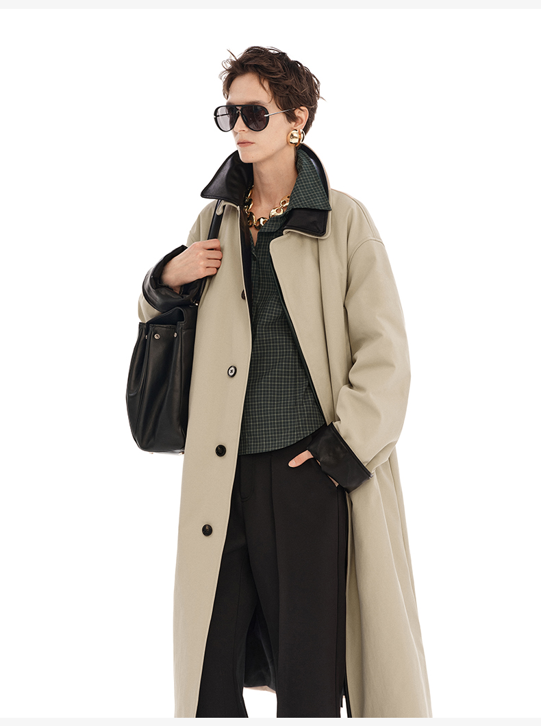 NUTH浅卡其色宽松中长款风衣皮领夹棉秋冬加厚大衣外套女