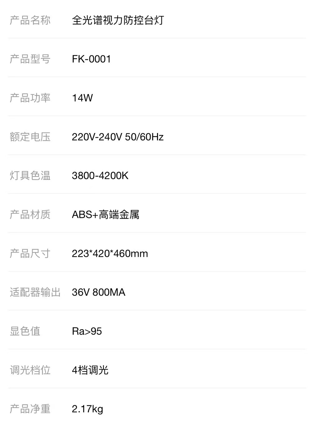 耀铭豪全光谱 近视护眼专用台灯 14W
