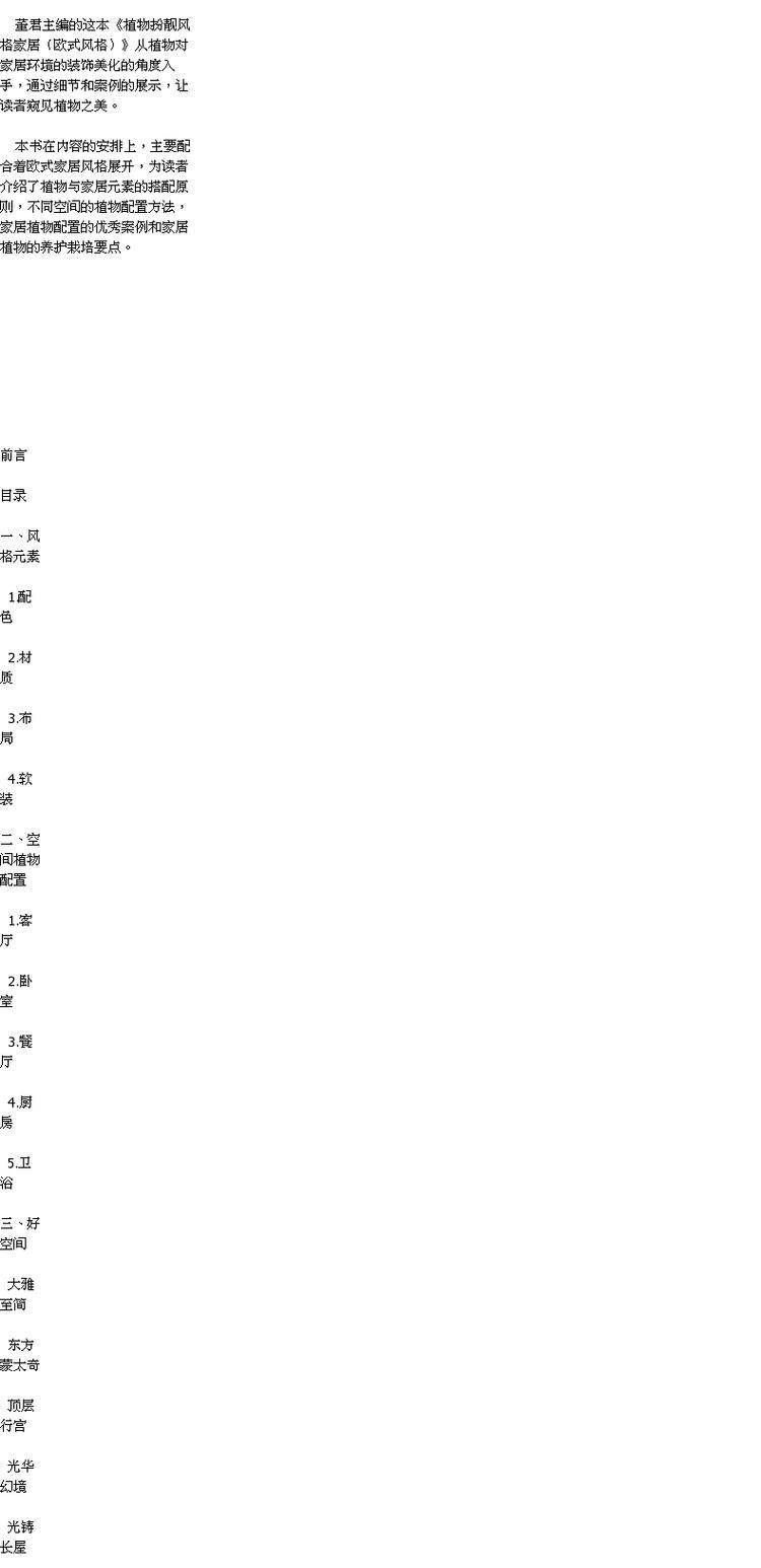 植物扮靓风格家居 欧式风格 8526 客厅卧室餐厅厨房卫浴 配色 材质 布局 软装 空间植物配置 法式奢华 美式英伦 摩登 室内设计案例
