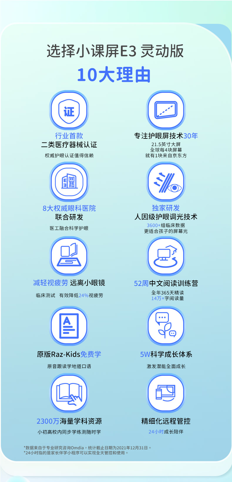 京东方(BOE) 小课屏 21.5英寸类纸护眼一体机小学初高中同步点读机家教机英语儿童学习机 E3-128G灵动版