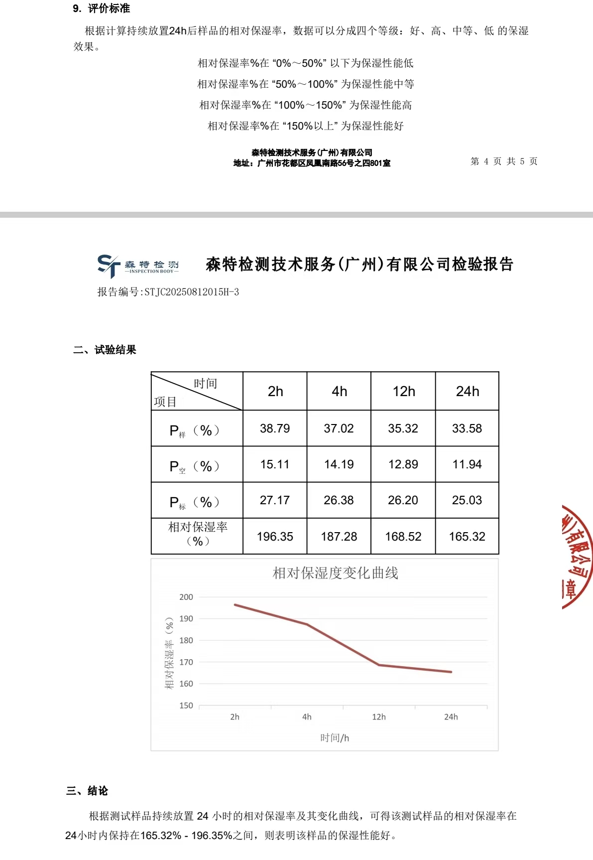 1.1保湿性能好,达到最高等级