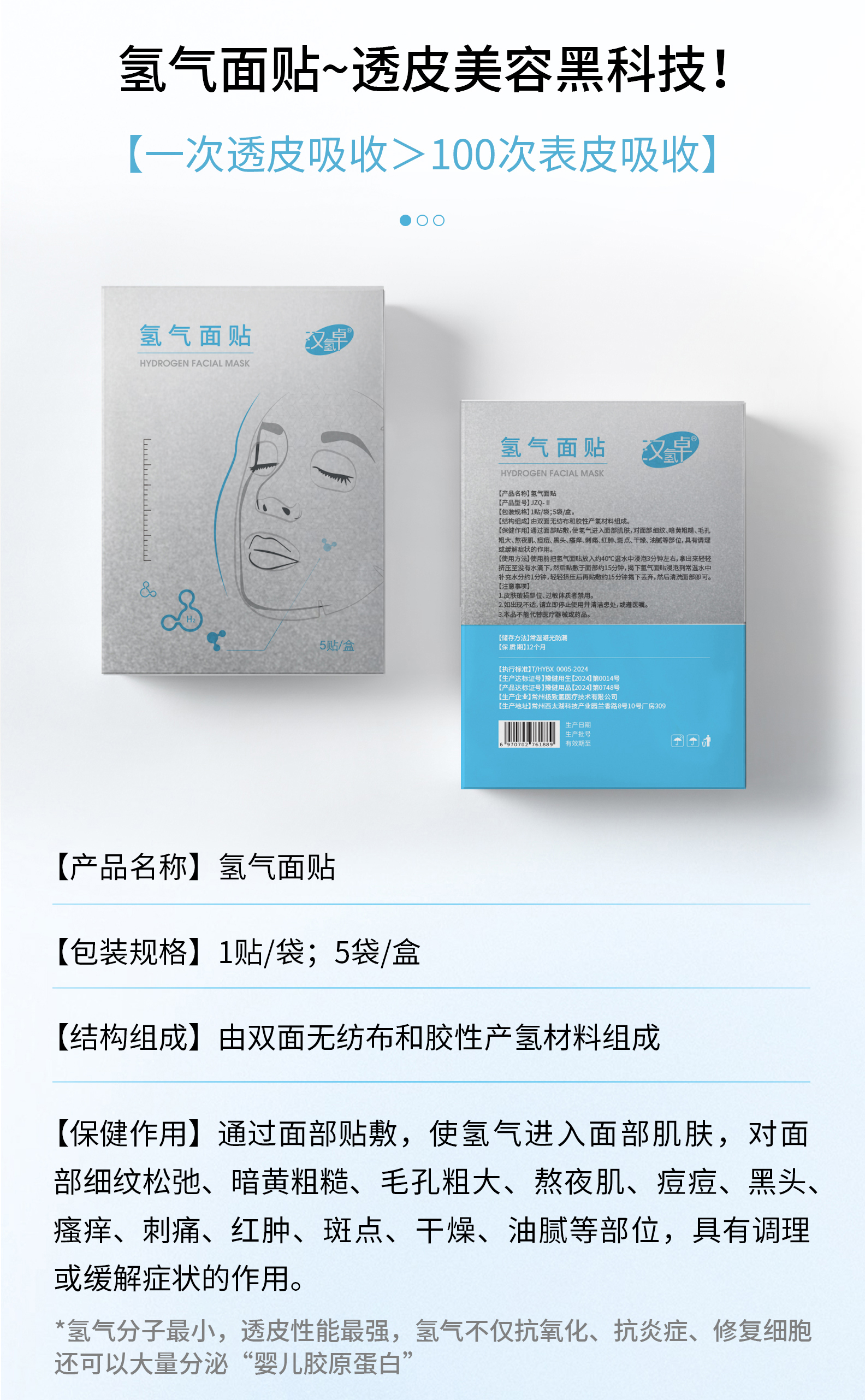 新兴的氢科技面膜完全符合以上3个要求