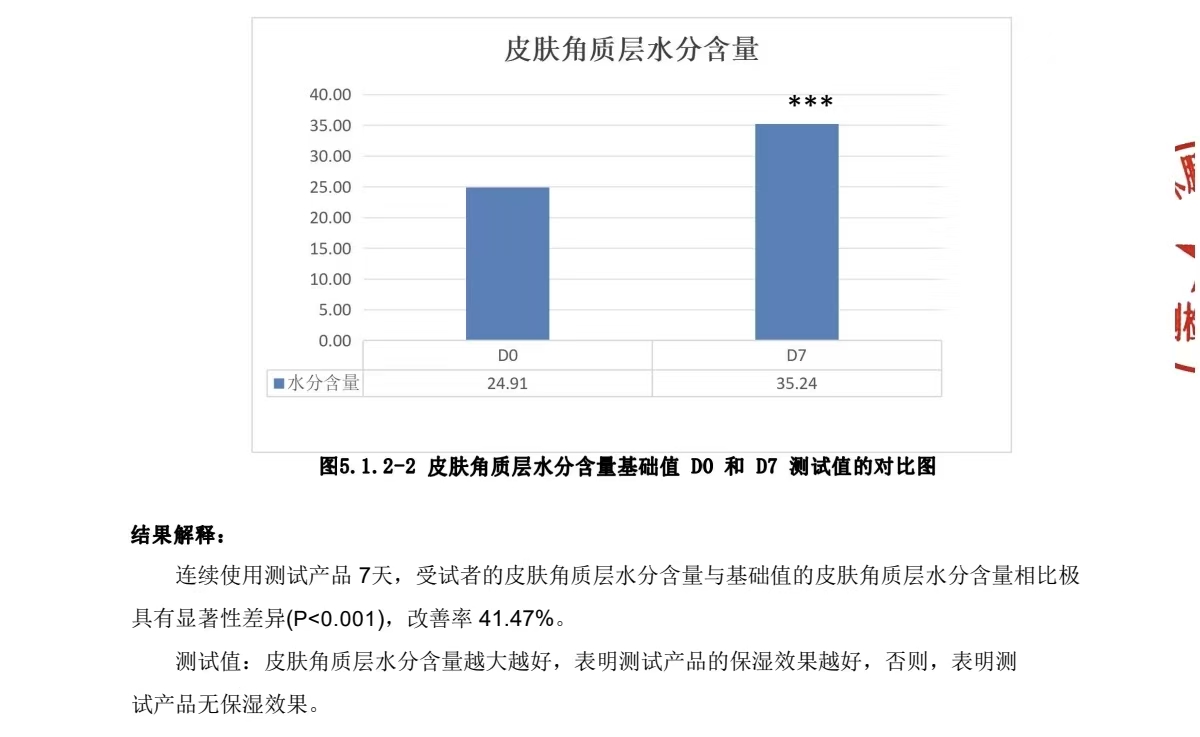 1.2皮肤角质层水分含量达到最高等级(***)