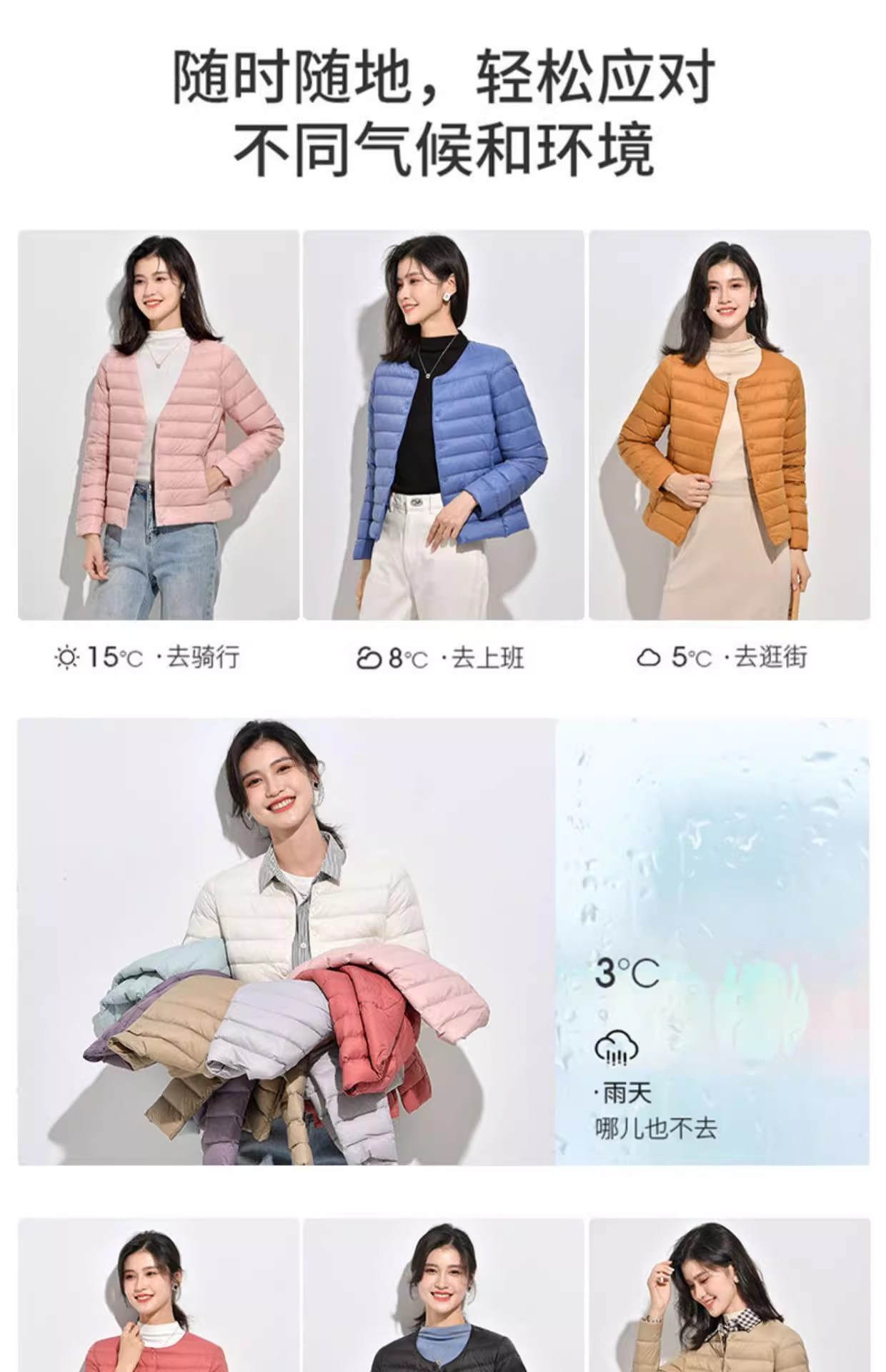 SHIMIDA轻薄羽绒服 一衣两穿 女短款 2024秋冬轻便内穿圆领/V领羽绒服