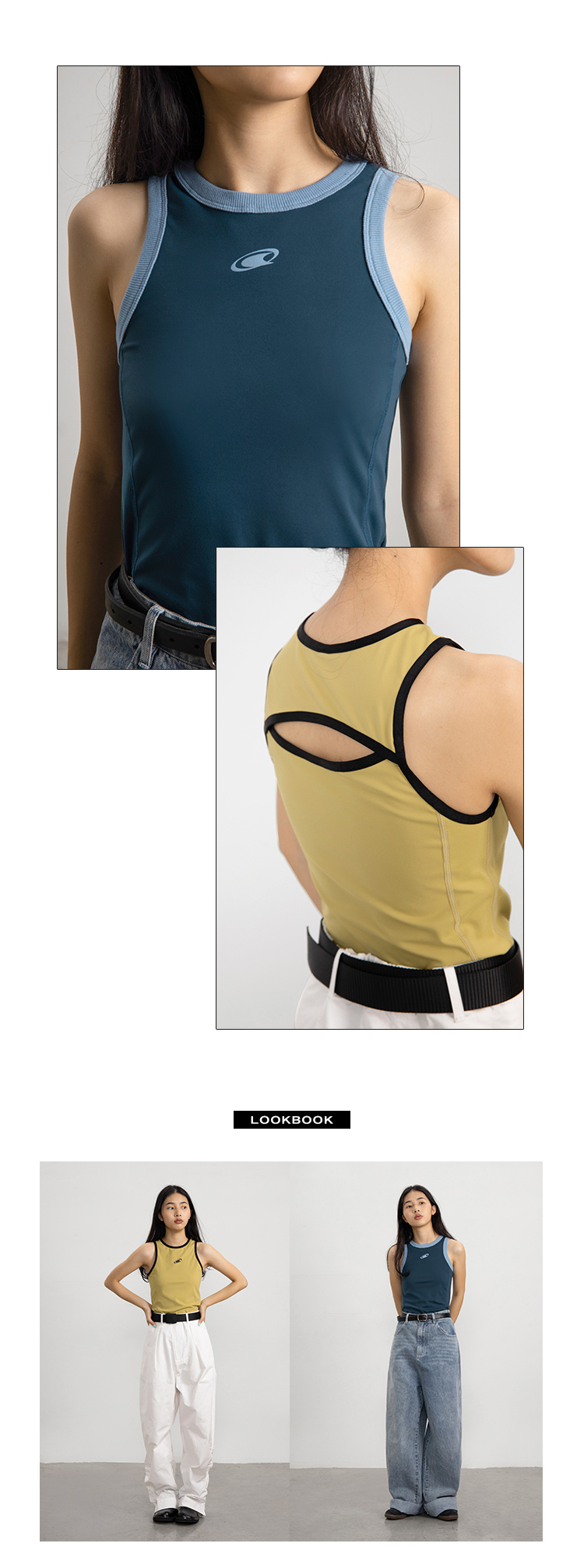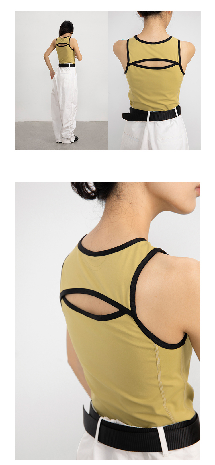 CryingCenter 复古撞色弹力运动紧身工字背心 显瘦镂空 哭喊中心