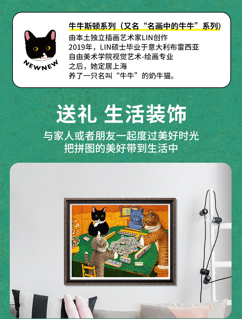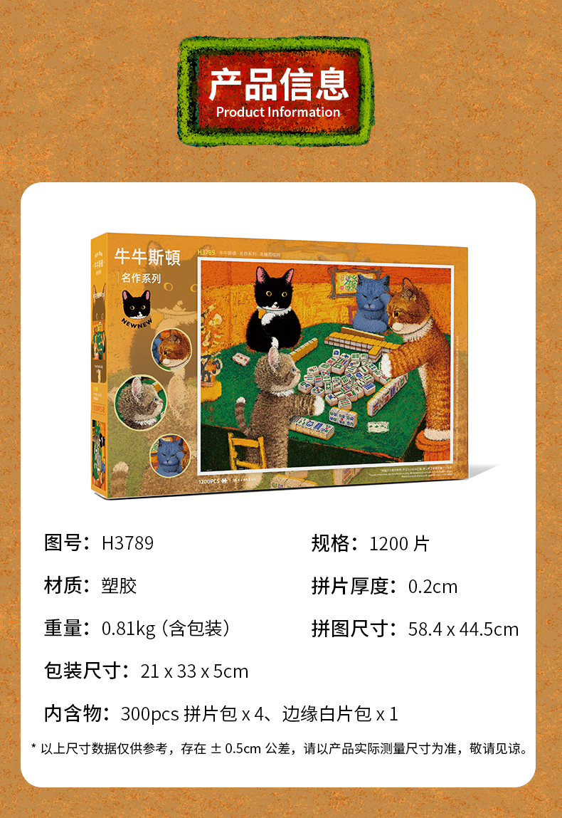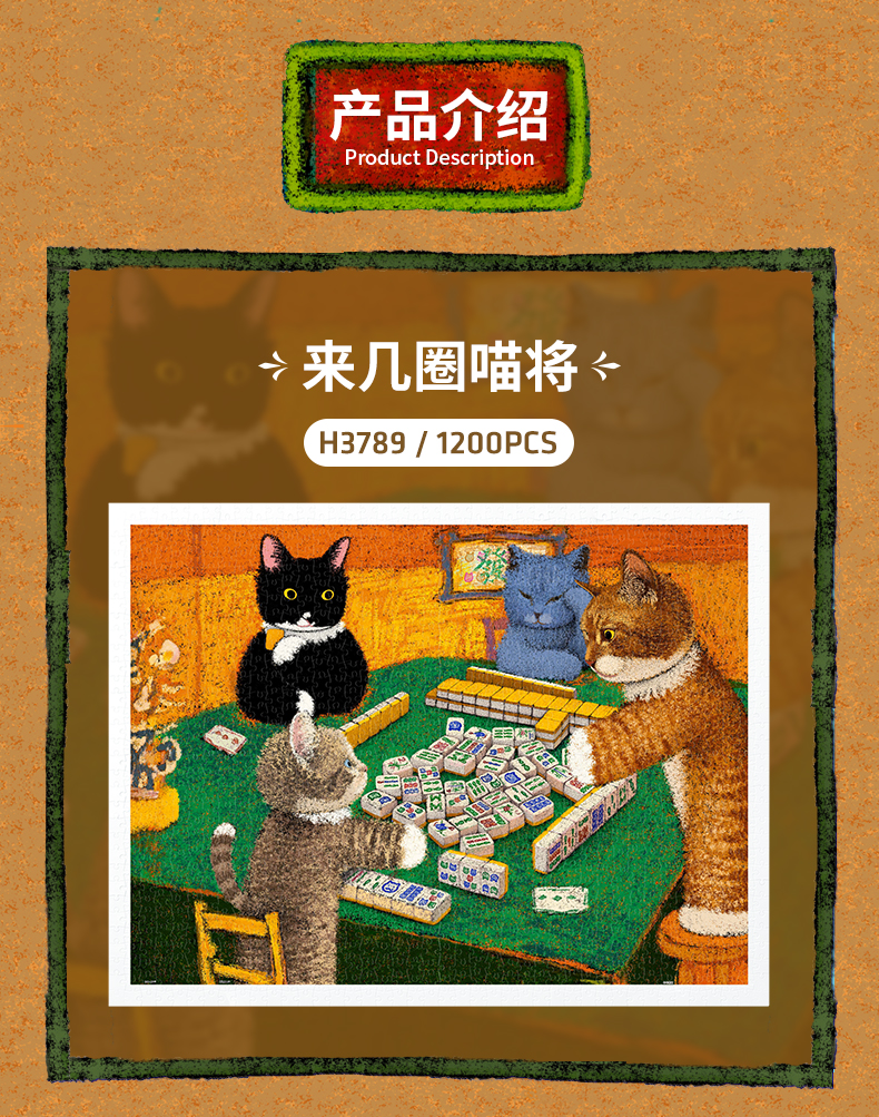 1200片 平面塑料拼图 H3789 牛牛斯顿-名作系列-来几圈喵将