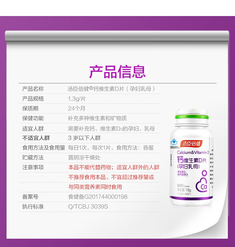 汤臣倍健 钙维生素D片(孕妇乳母)(60片)