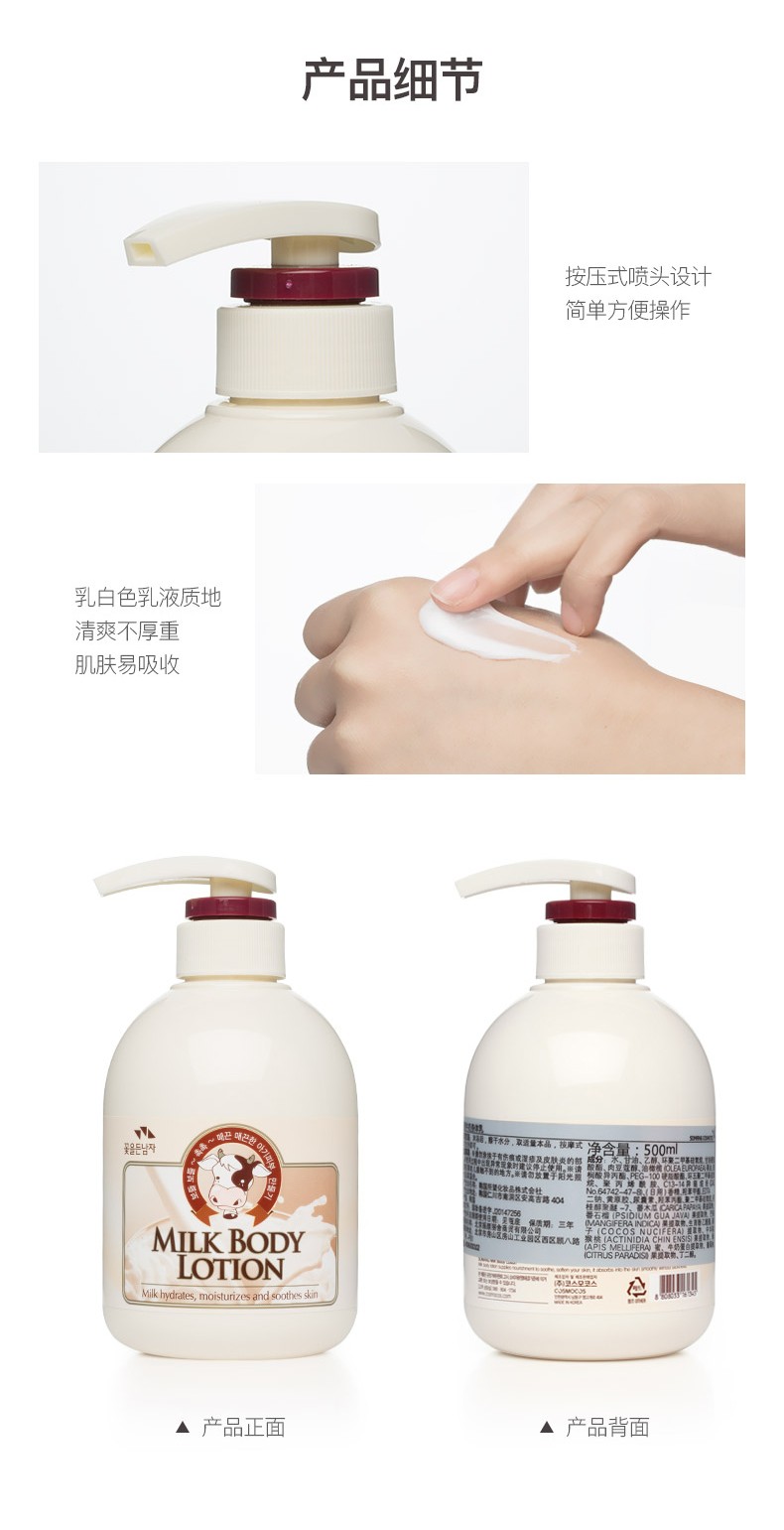韩国进口所望SOMANG牛奶补水身体乳500ml