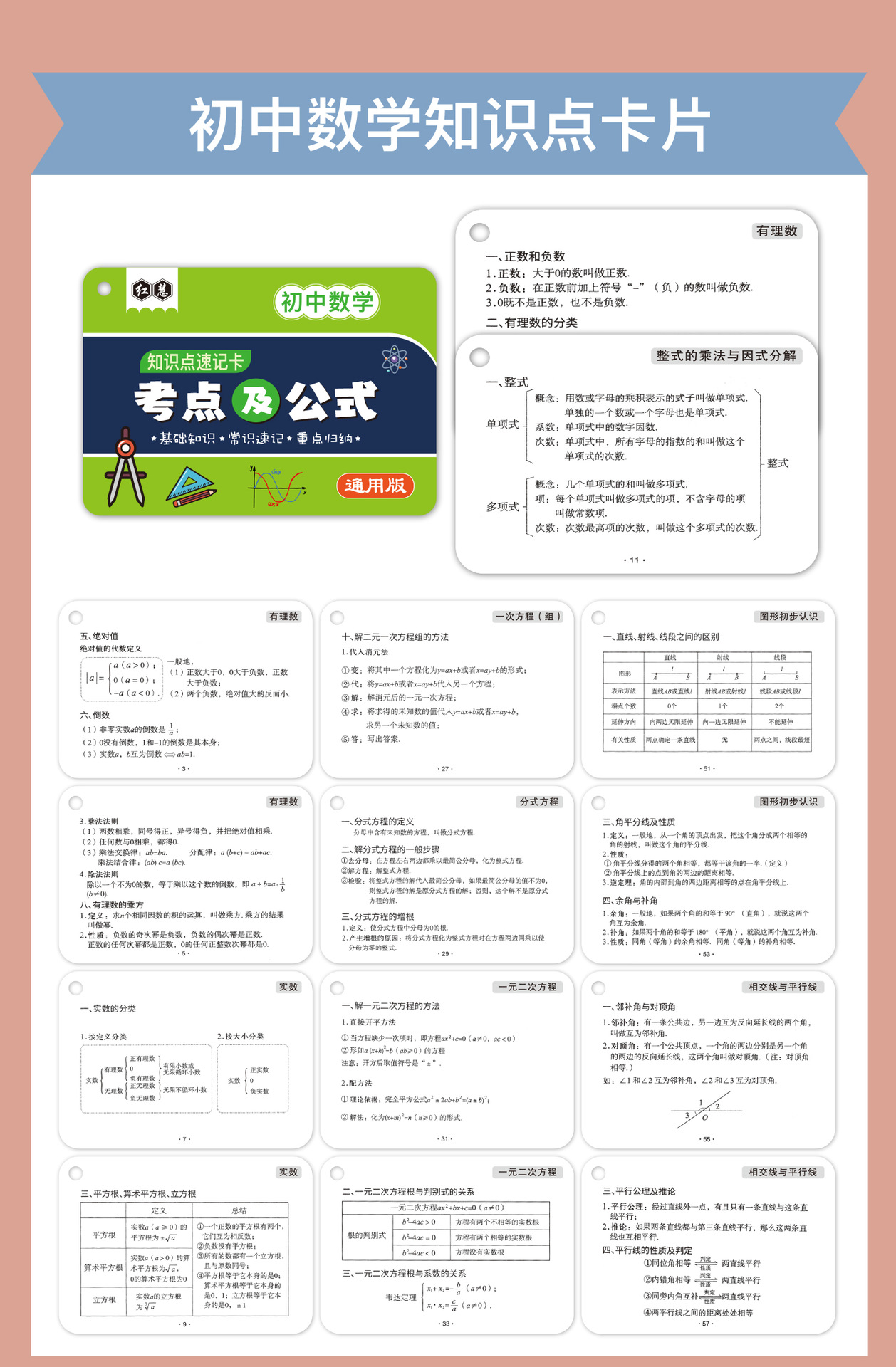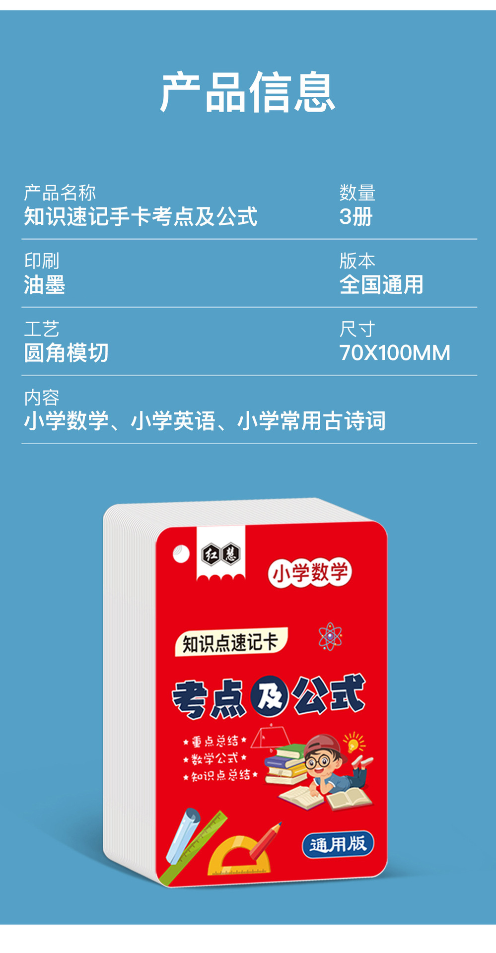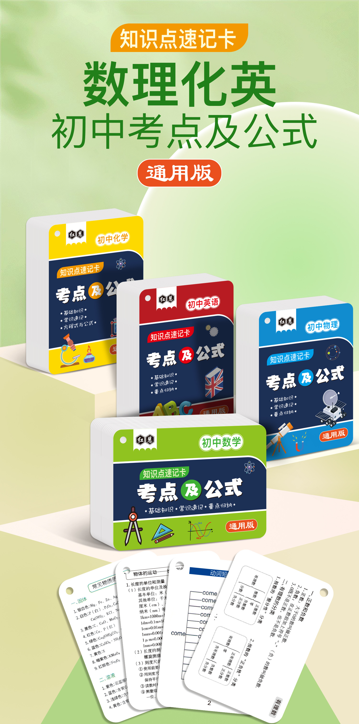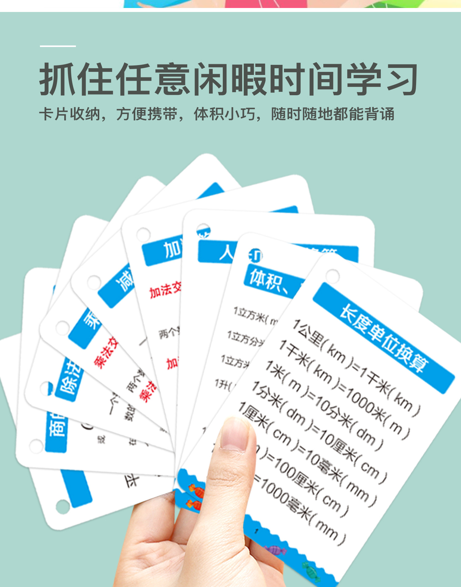 开学季福利!【新版升级腹膜】小学初中公式大全卡片基础知识点定律计算法则记忆手卡
