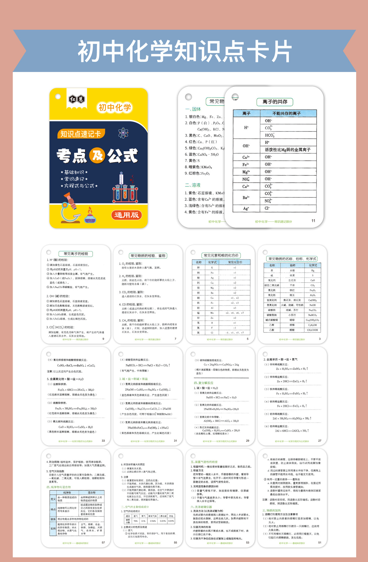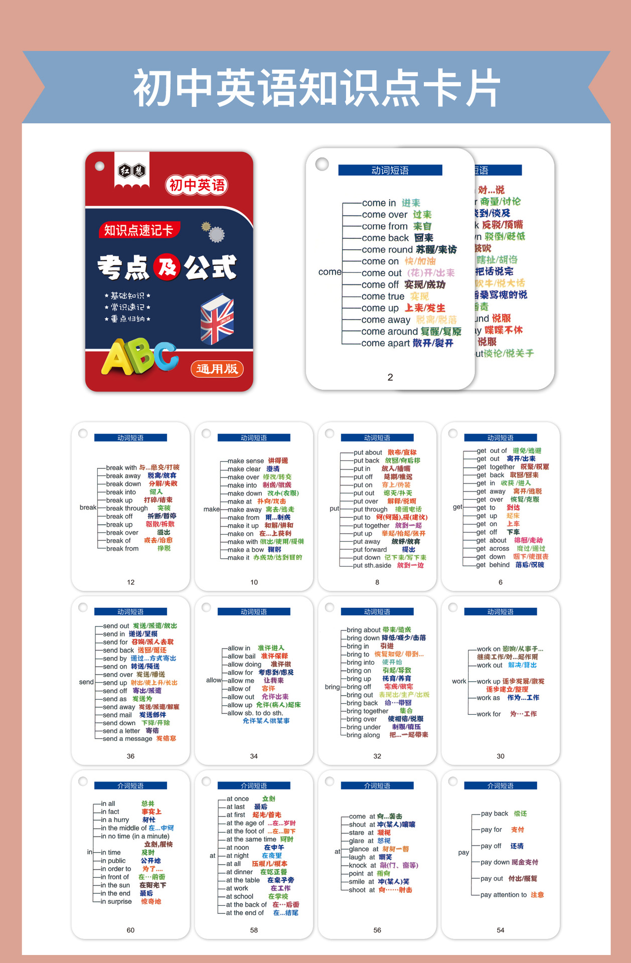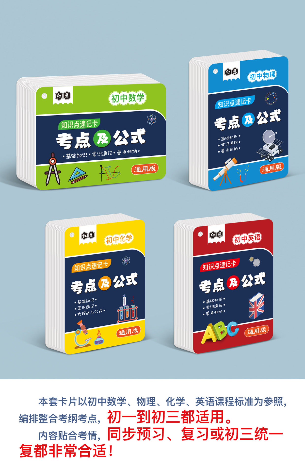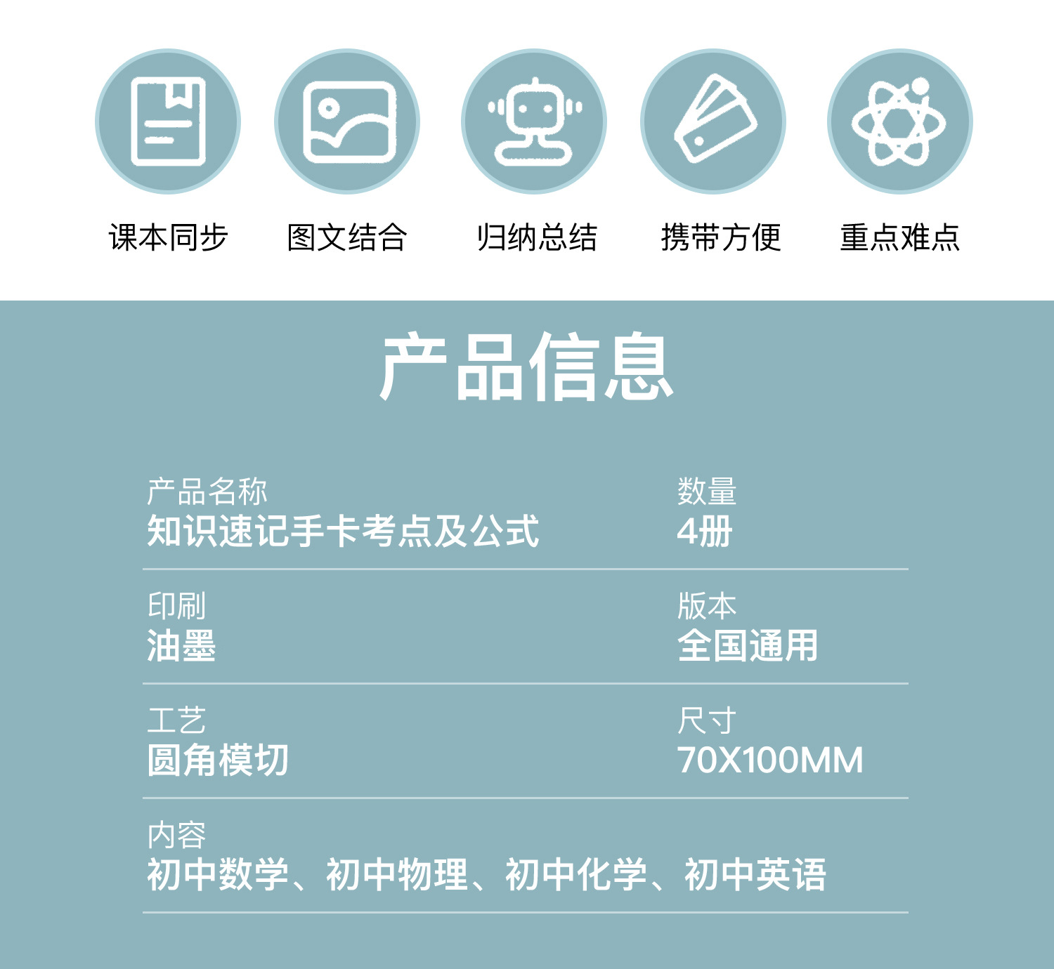 开学季福利!【新版升级腹膜】小学初中公式大全卡片基础知识点定律计算法则记忆手卡
