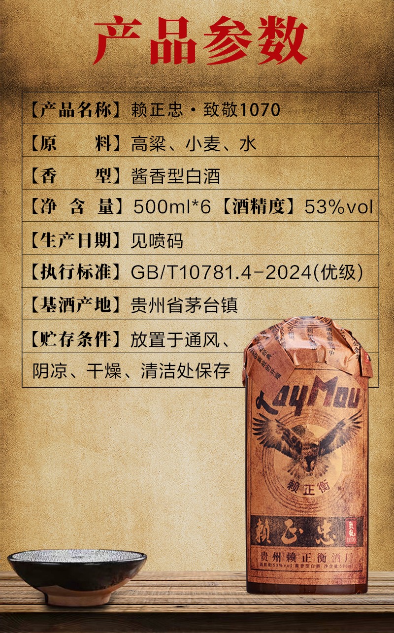 【送礼佳酿】赖正衡·赖正忠致敬1070 酱香型白酒 500ml/瓶 53度土陶瓶酒瓶 送三个手提袋+收藏证书+开瓶器 一箱六瓶,纯粮酿造,越喝越顺口
