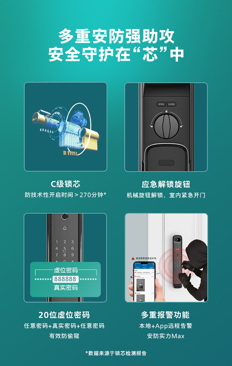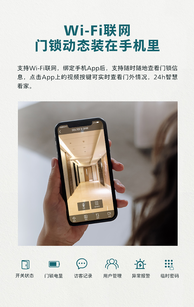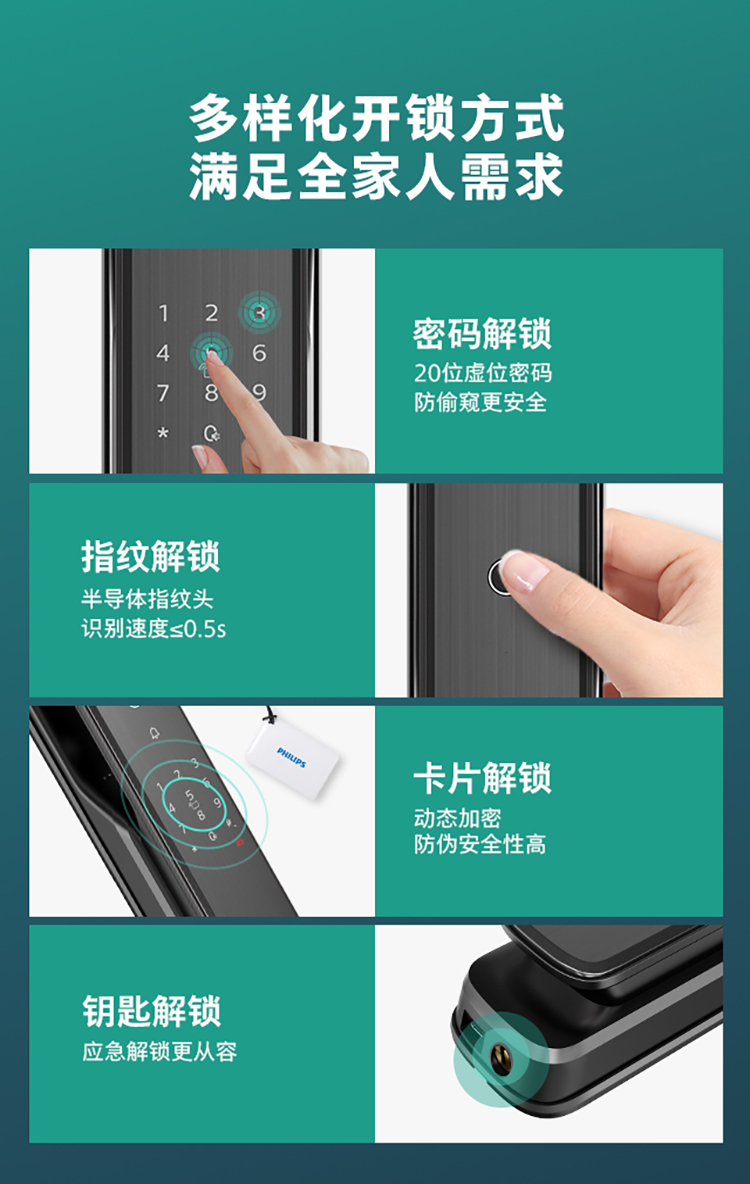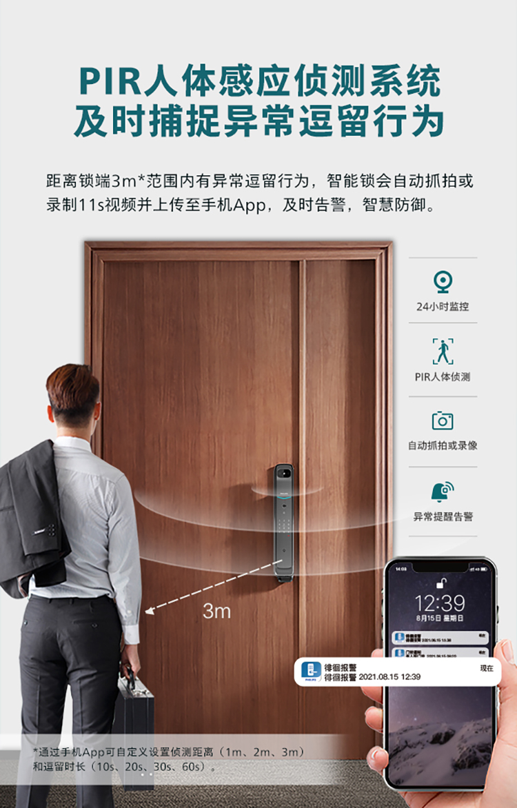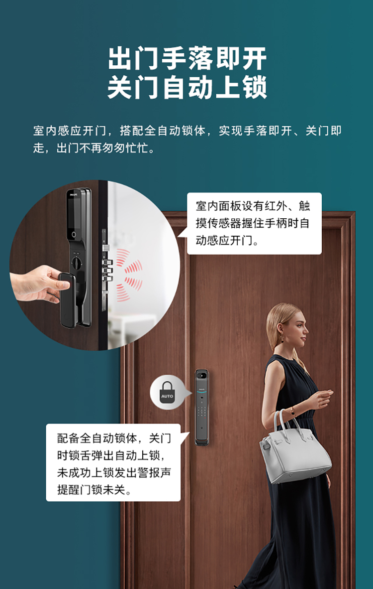 飞利浦(PHILIPS) 电子锁 全自动带屏推拉式智能可视猫眼视频锁指纹密码锁智能门锁 DDL-709VP-5HW
