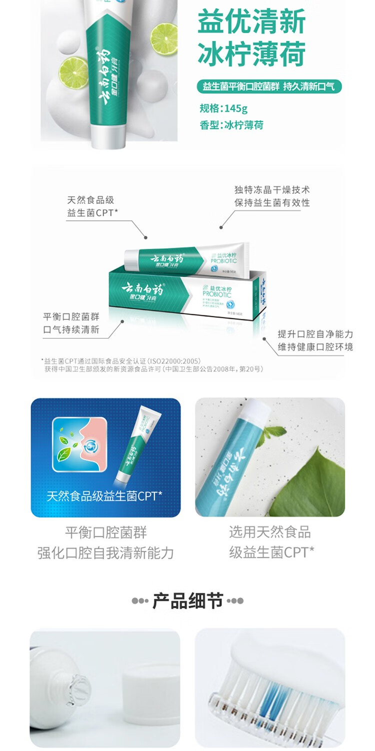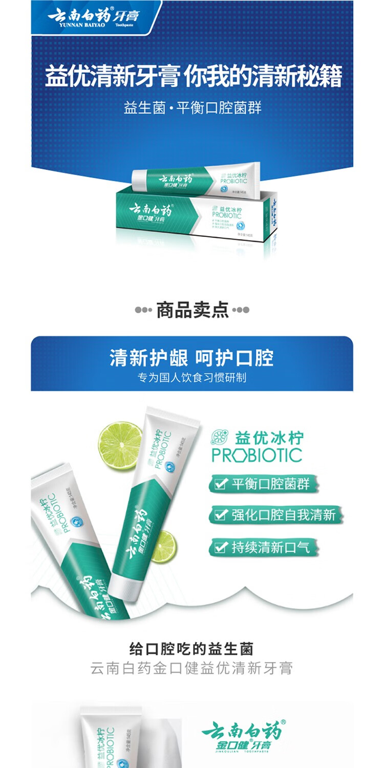 云南白药 金口健牙膏(益优清新冰柠薄荷型)145g*5支