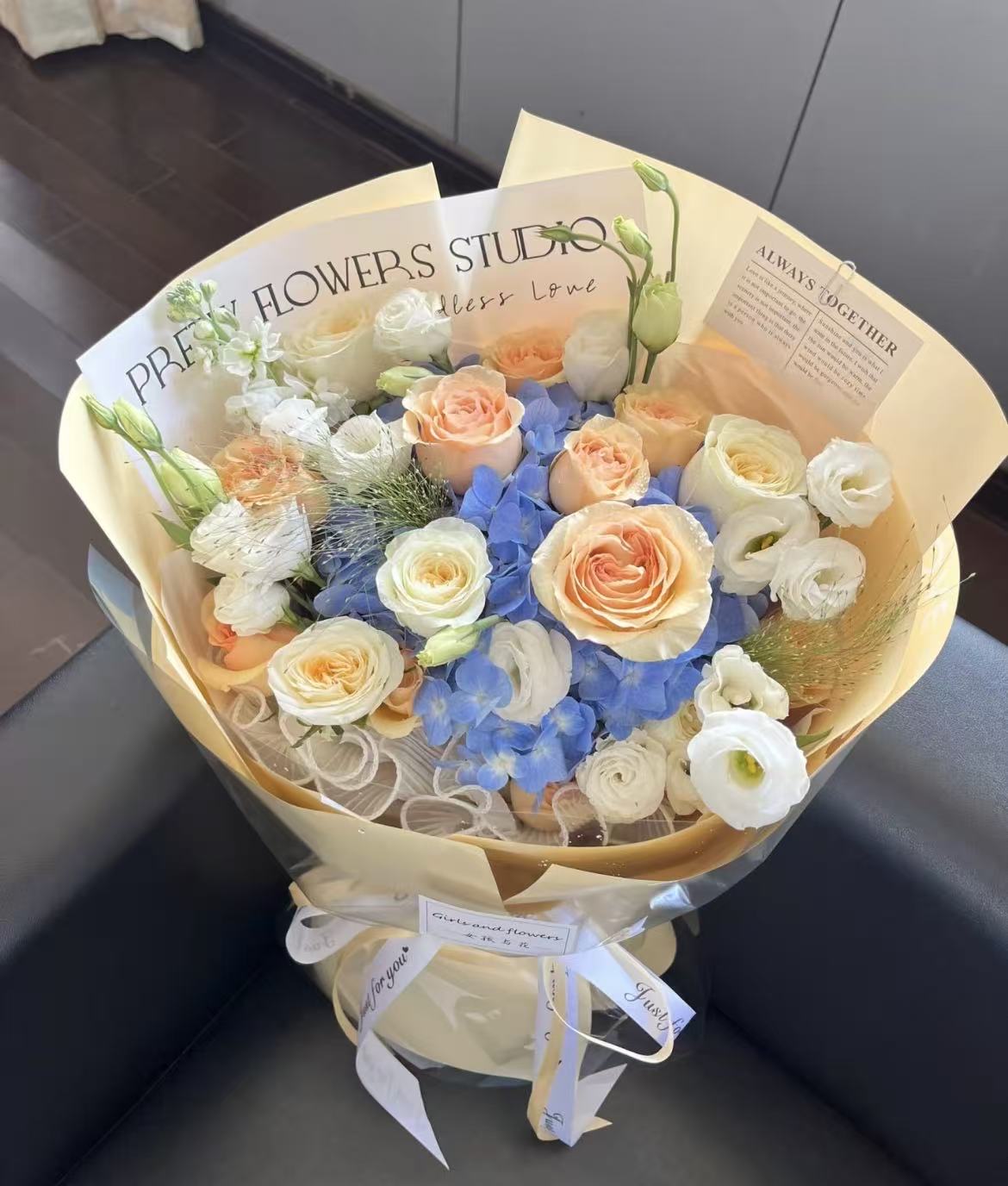 【当日达】顺丰免邮◆绣球 香槟 奶油杯 白桔梗 紫罗兰 喷泉草 大号手捧花 充满温暖 幸福和美好