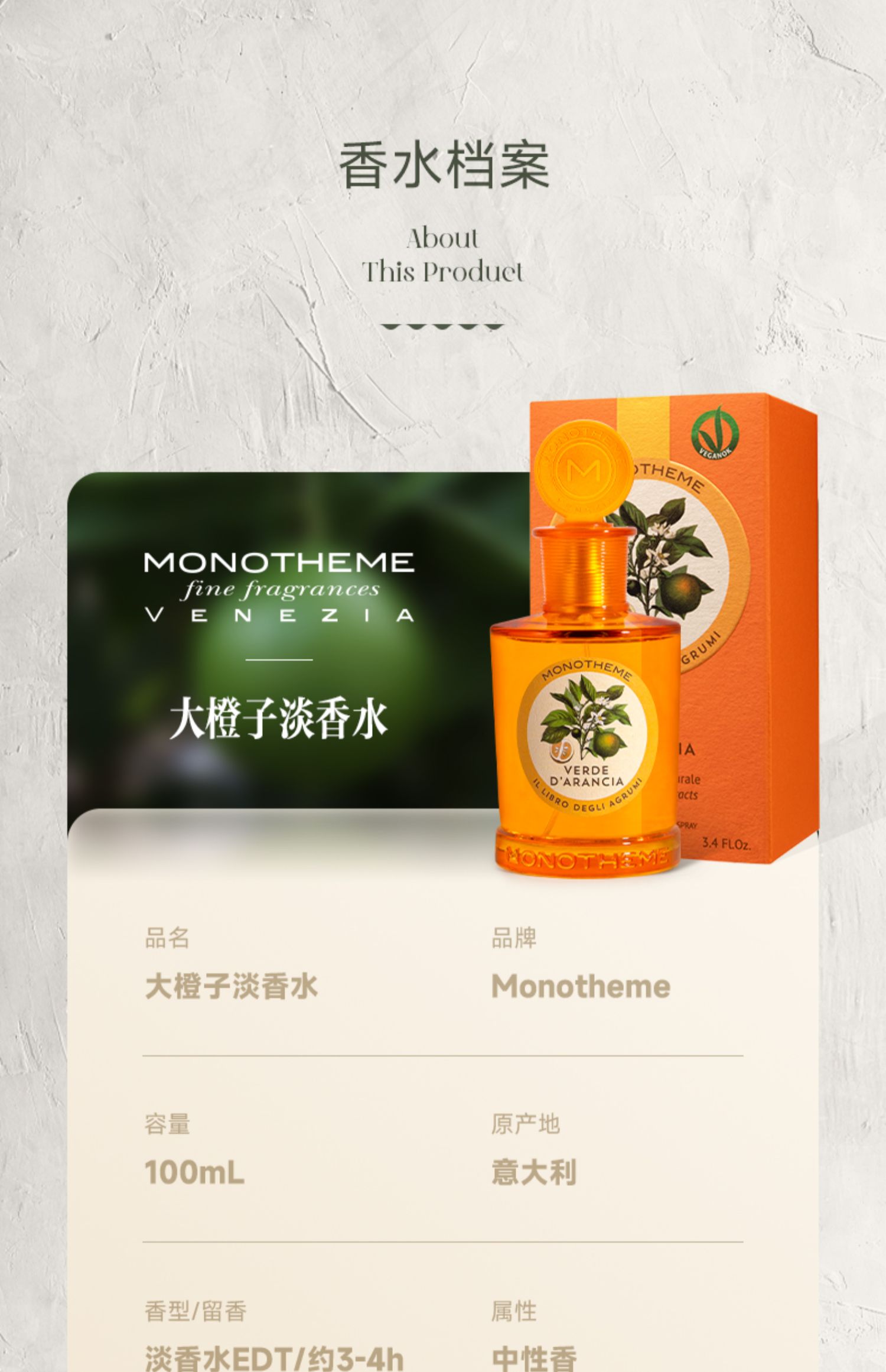 【保税仓】威尼斯精品香氛(Monotheme) 柑橘之书系列-绿橘淡香EDT 100ML