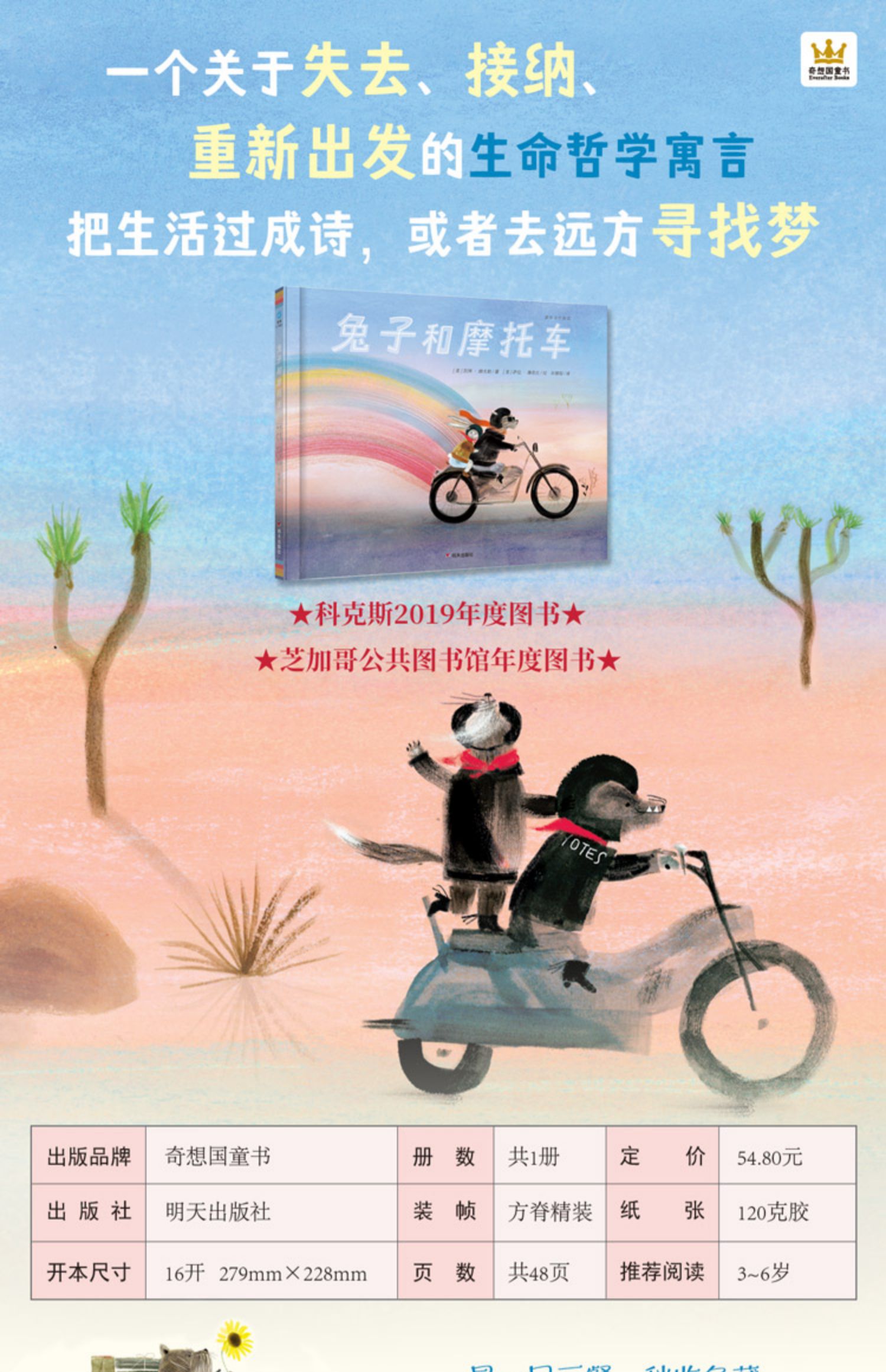 兔子和摩托车 3-6岁儿童精装绘本图画书睡前故事书童眸当代精选奇想国童书关于梦想与远方故事冒险友谊生命教育绘本幼儿园书籍