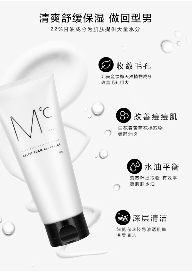 MdoC蒙度士 男士舒缓保湿洁面乳 150g(白色)